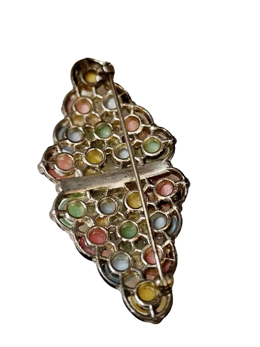 Size: Almost 3" Color: Multicolor Condition: Very good vintage Signed: None Details: Well made, looks like a Duette