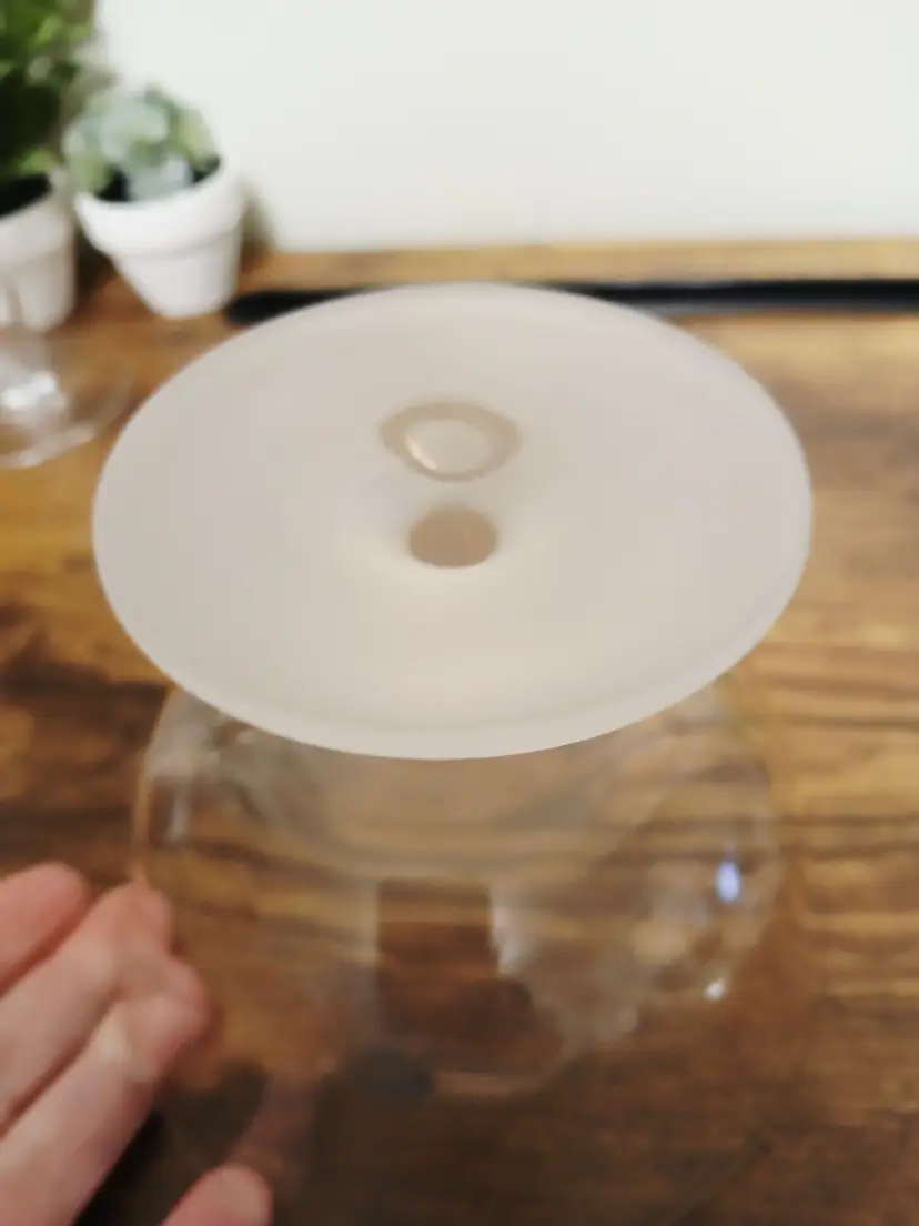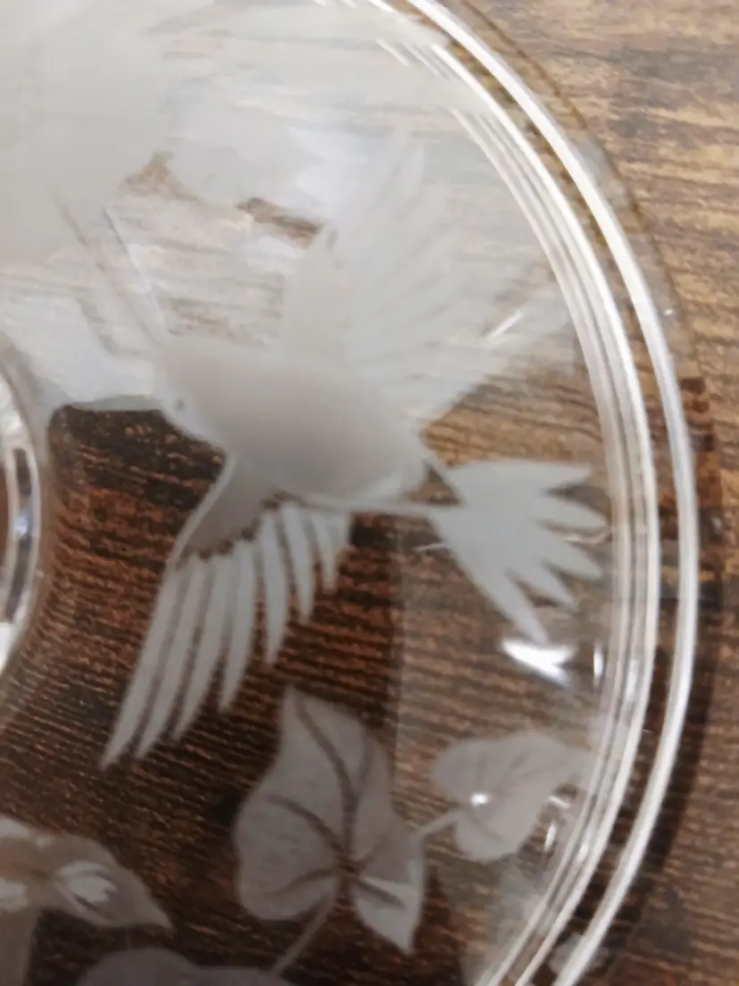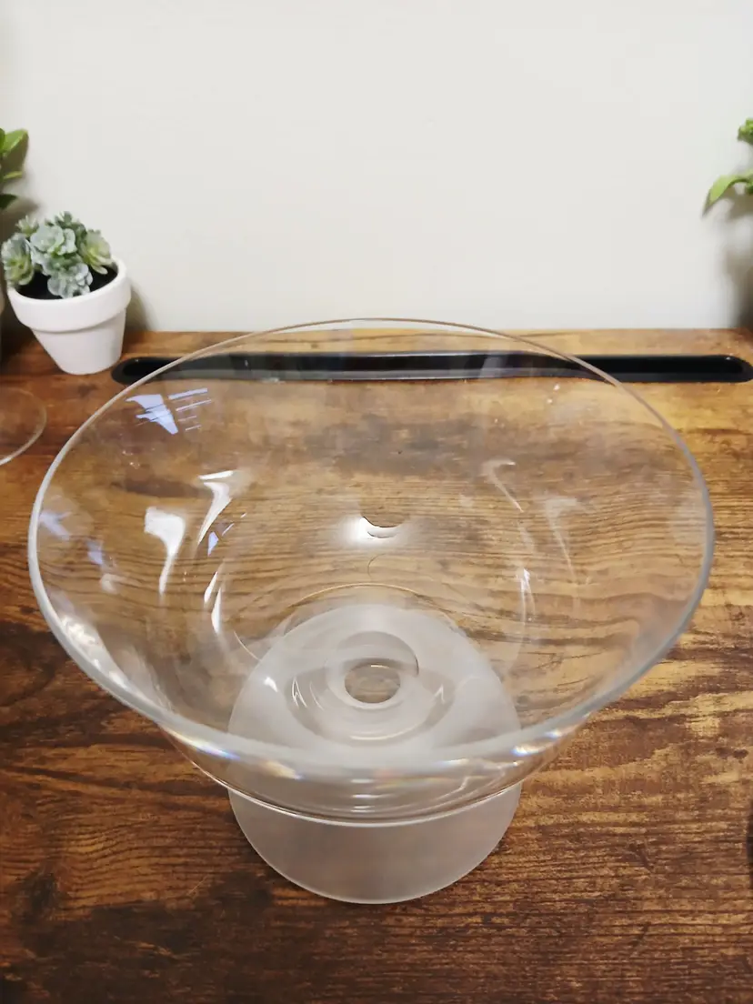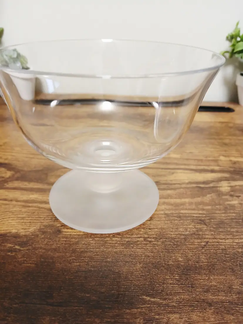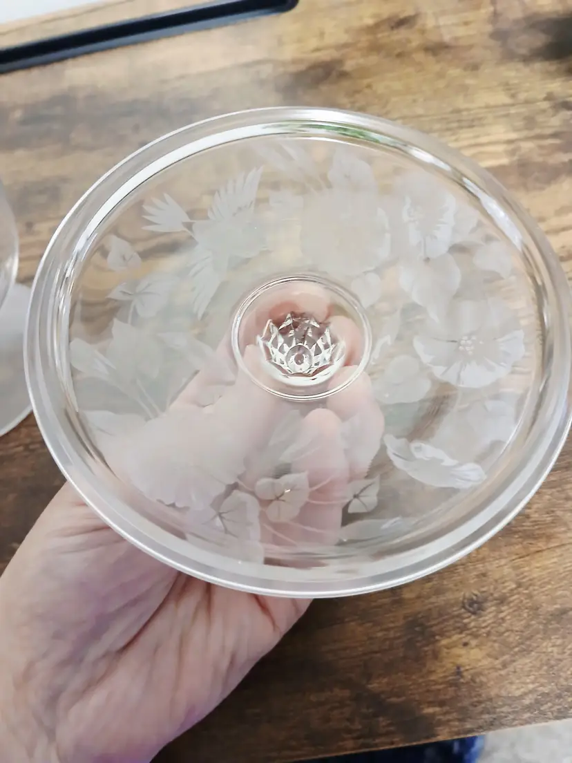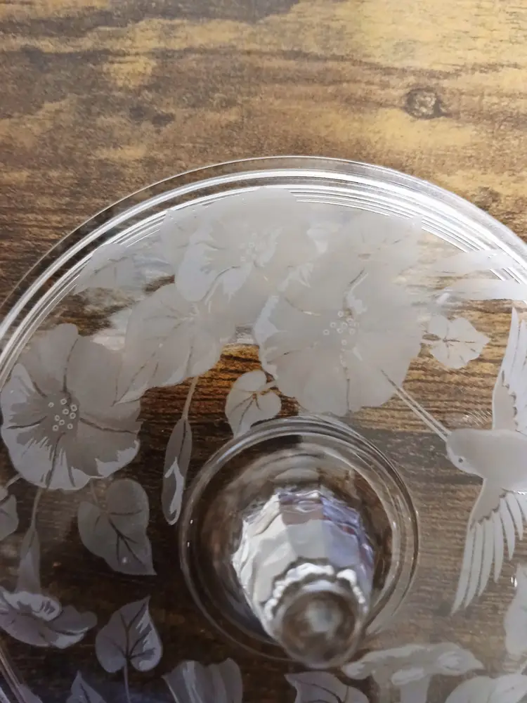 Add a touch of elegance to your decor with this vintage glass candy dish. Featuring a classic pedestal design and a matching lid, it's perfect for storing treats or as a decorative centerpiece. Approximately 6 1/2" x5"