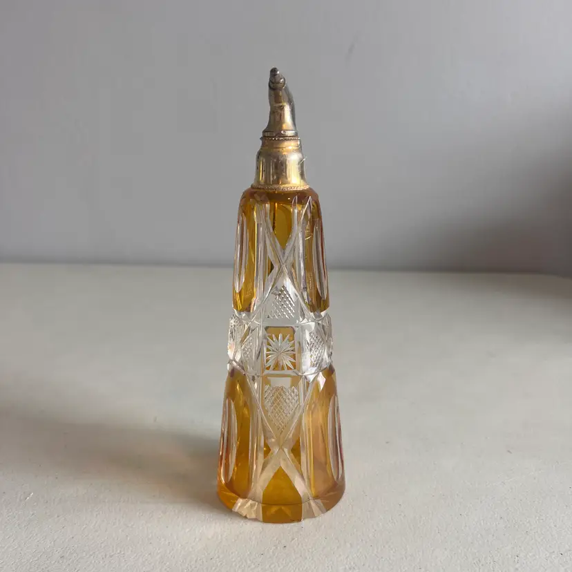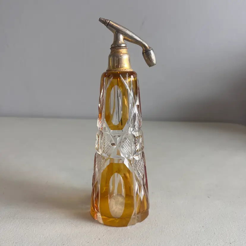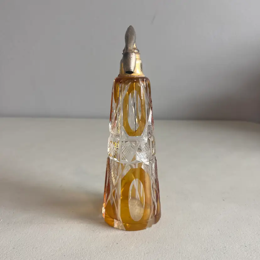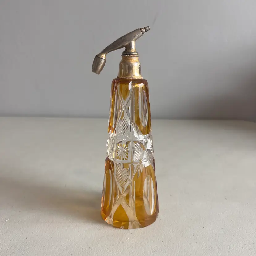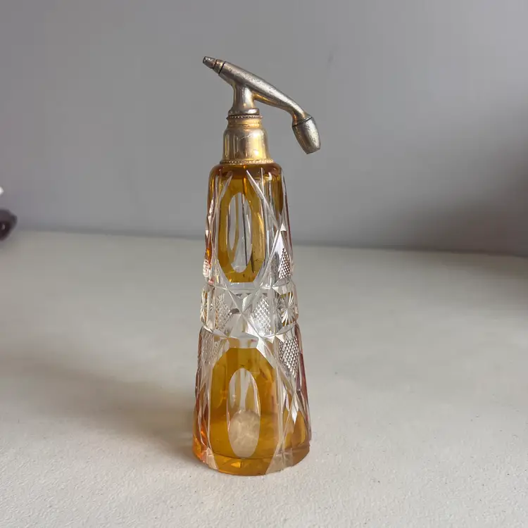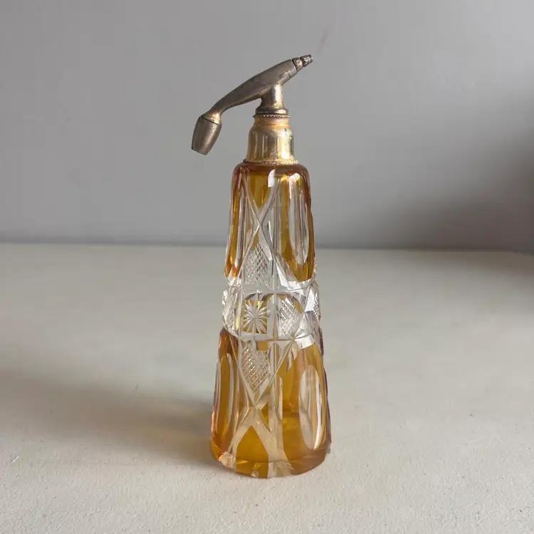 Here We Have a Vintage Glass Perfume Atomizer Bottle Amber Cut to Clear Bohemia Art Deco Glass