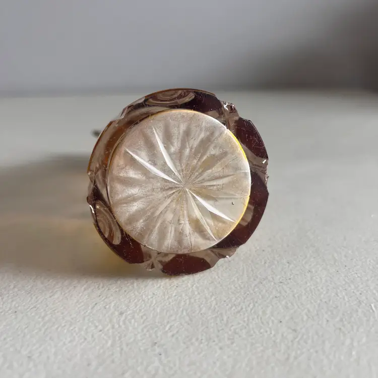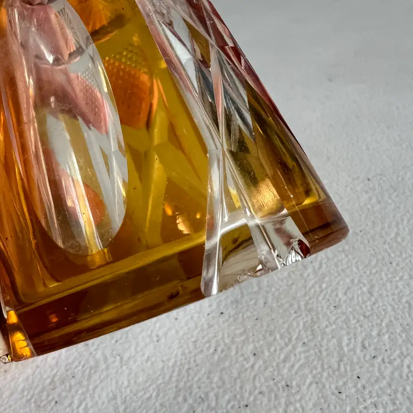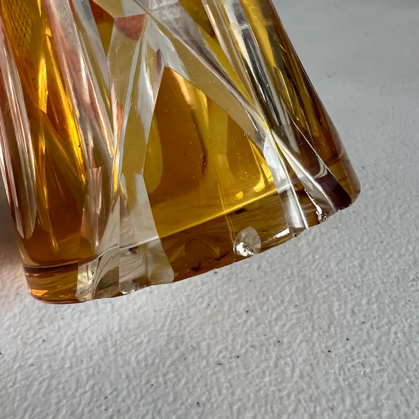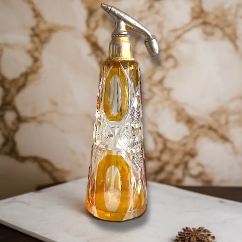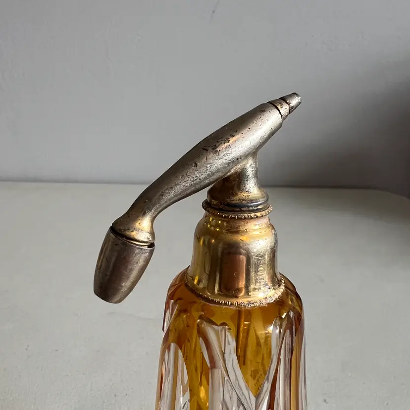 Here We Have a Vintage Glass Perfume Atomizer Bottle Amber Cut to Clear Bohemia Art Deco Glass