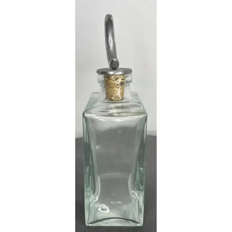 Vintage Glass Square Decanter & Half-Moon Silver Cork Stopper is in excellent vintage pre-owned condition, with NO chips, cracks or repairs. Please review all pictures for proper assessment of its excellent vintage pre-owned condition.