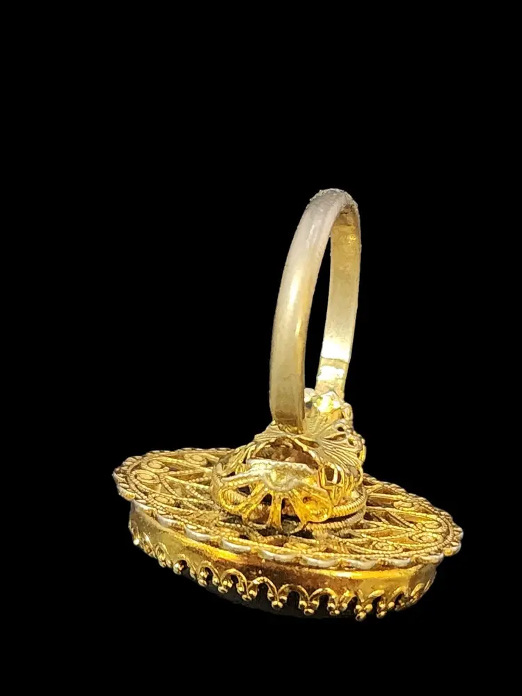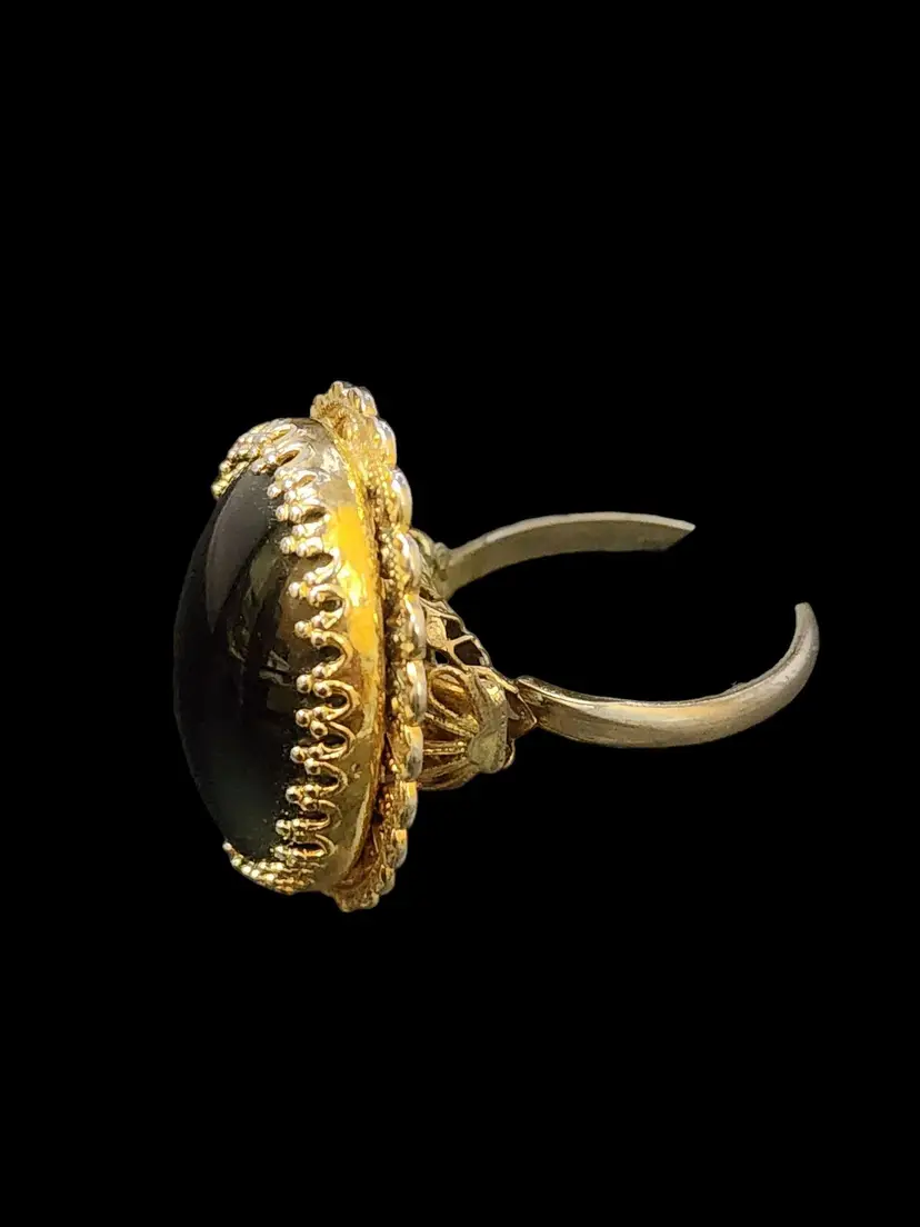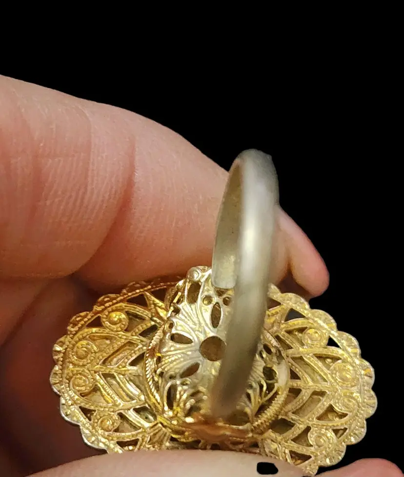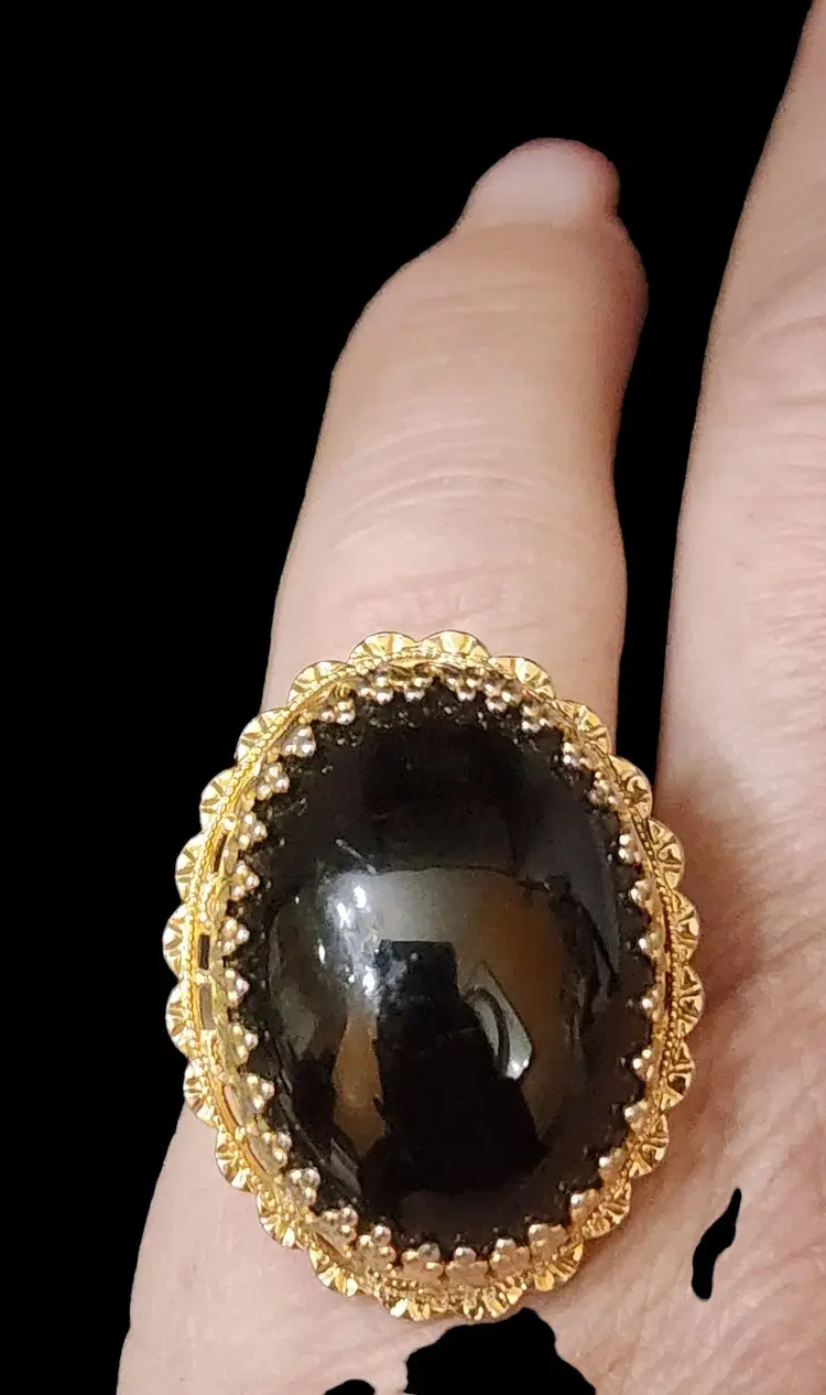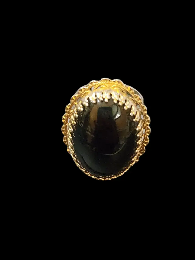 Size: Adjustable shank, 1.5" Long Color: Black, Gold Condition: Good vintage Signed: None Details: Bottom shank the plating is off, worn!