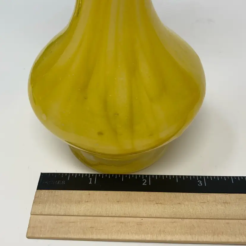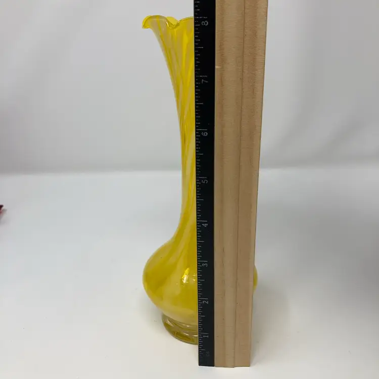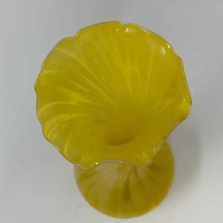 Vintage Glass Yellow Swirl Vase! 8” Tall! NEW to District? Enter code Michel42 into your wallet prior to your first ever purchase and save $5 off any $10 or more! Give me a Follow and I WILL Follow you back!