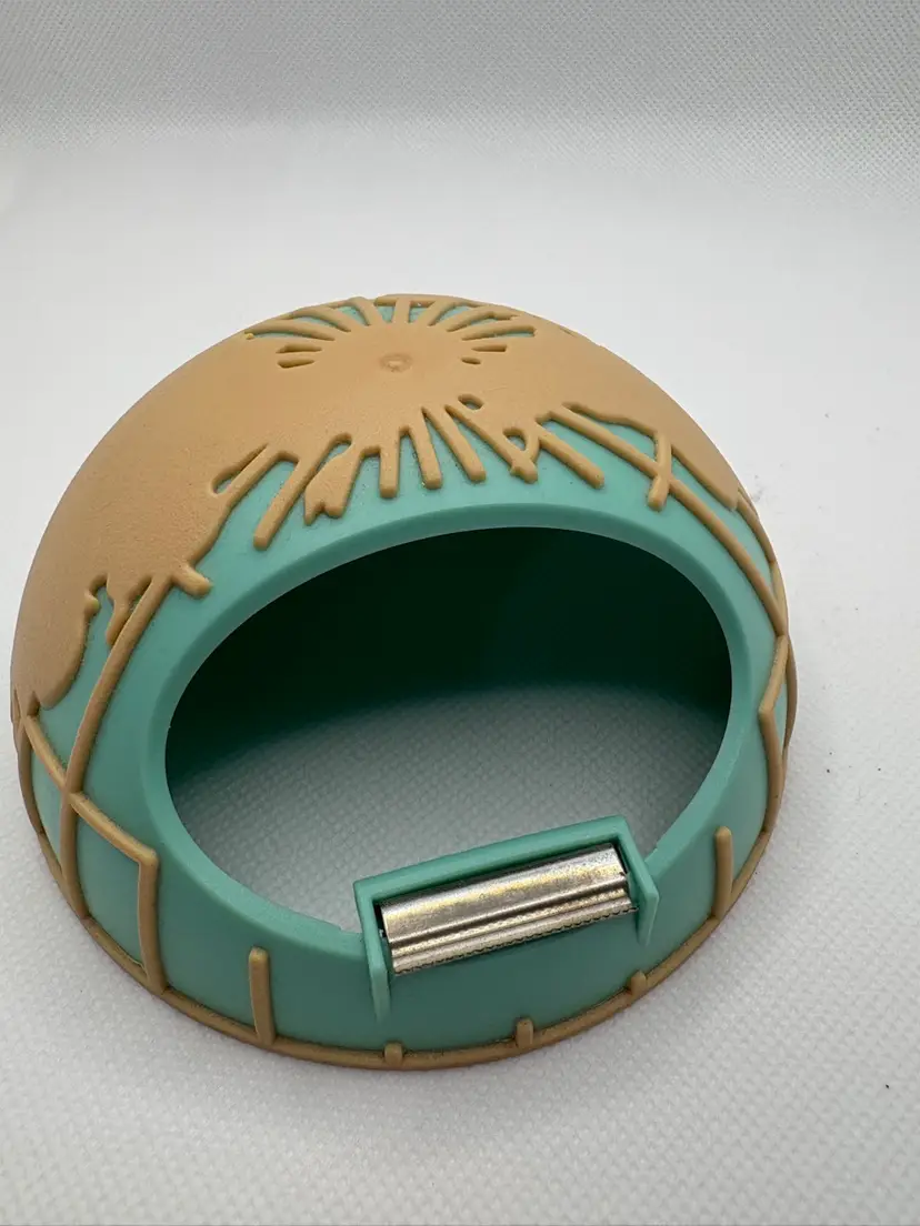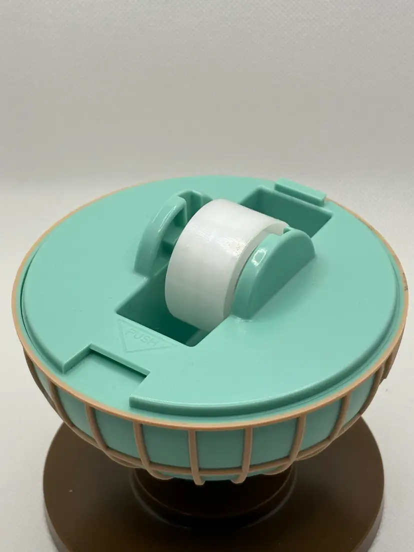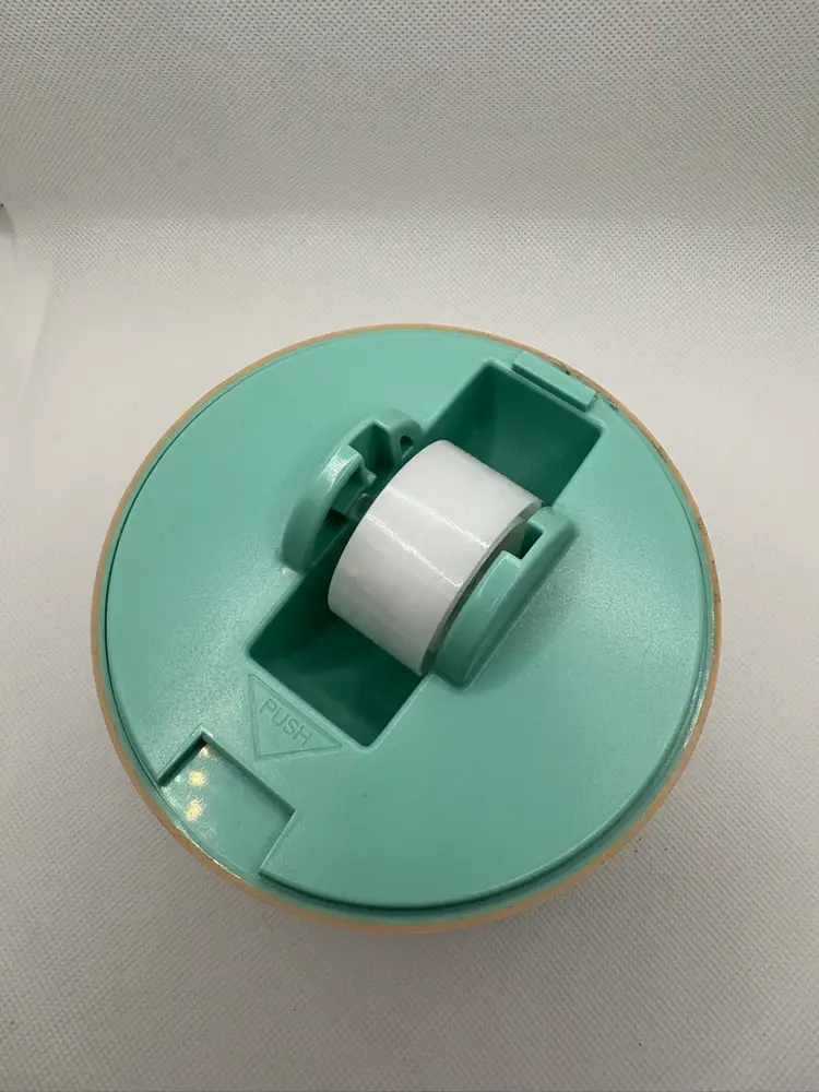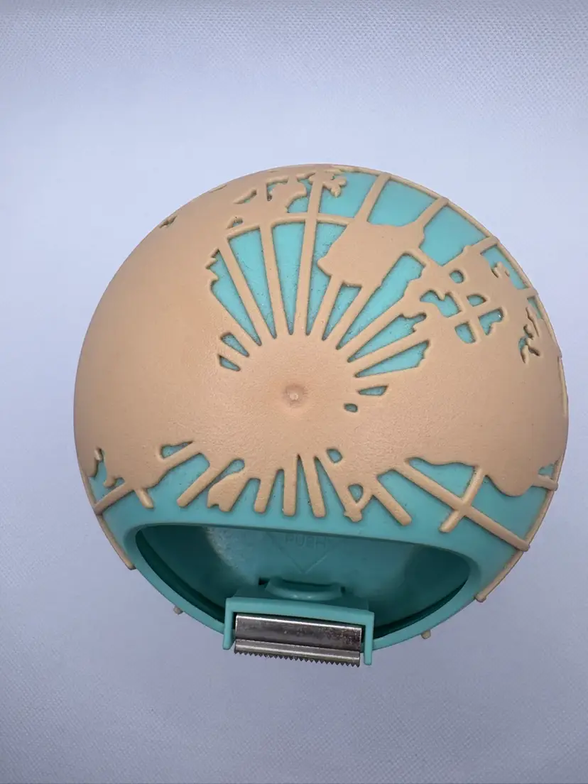 Features: • Pre-owned, excellent working condition – minor signs of use, no cracks or chips. • Blade cuts tape cleanly. • Durable plastic with weighted base. • Earth-tone tan with teal oceans. • Approx. 5” tall x 4.5” wide. • Fits standard ¾” width tape rolls (tape included for demonstration).