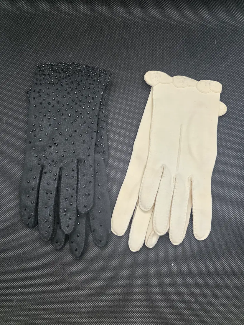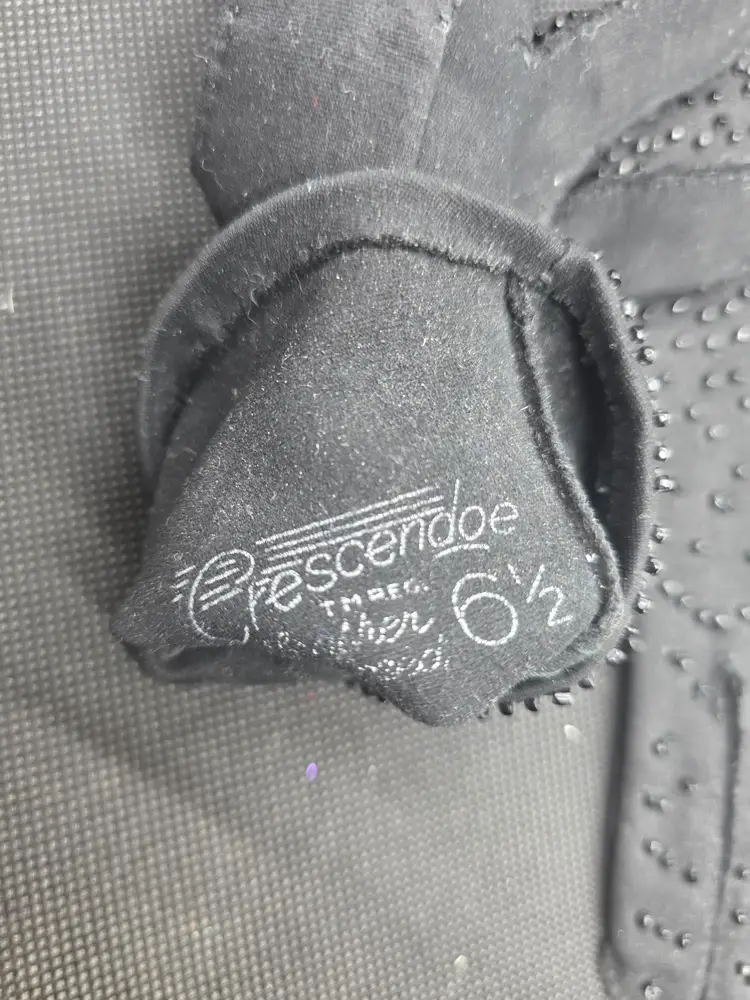 Crescendoe and Jazarsso ( I can't read the tag) they are both size 6 1/2. No rips or tears! Nice! For very small hands!
