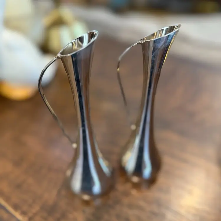 Vintage Godinger Silver Plated 7-Inch Bud Vases with Handles, Perfect for small floral arrangements or as decorative accents. These elegant bud vases feature a sleek silver-plated finish and a delicate handle, adding a touch of classic charm to any space.