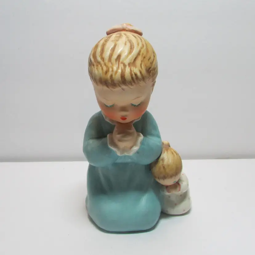 This adorable figure has some wear, there is some crazing on the bottom. She is about 6 1/2" x 4" x 3 1/2". This is shipped from a smoke free home. Thanks for looking! locfb23