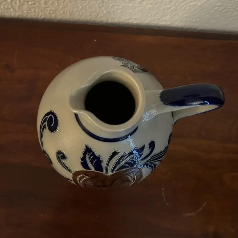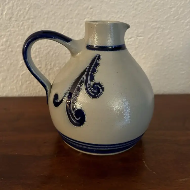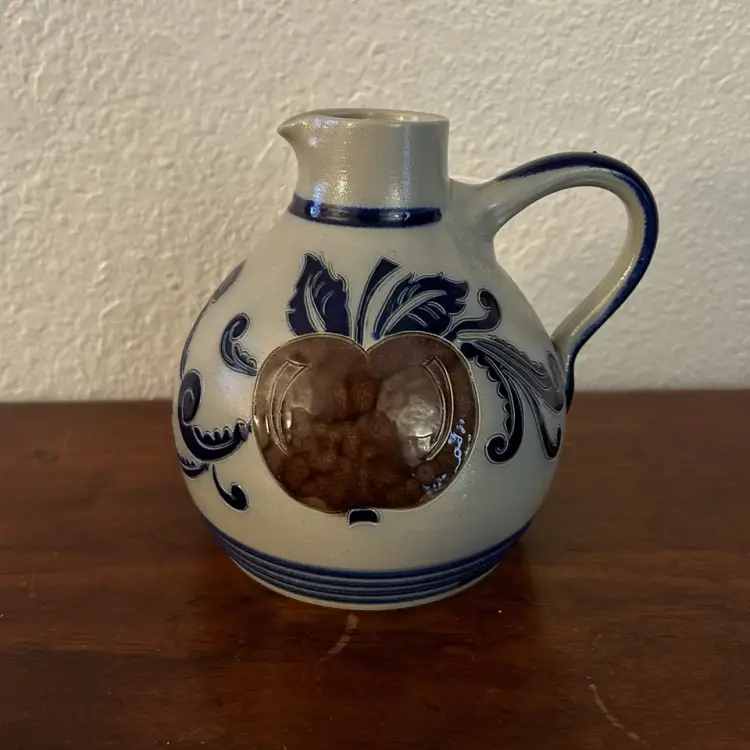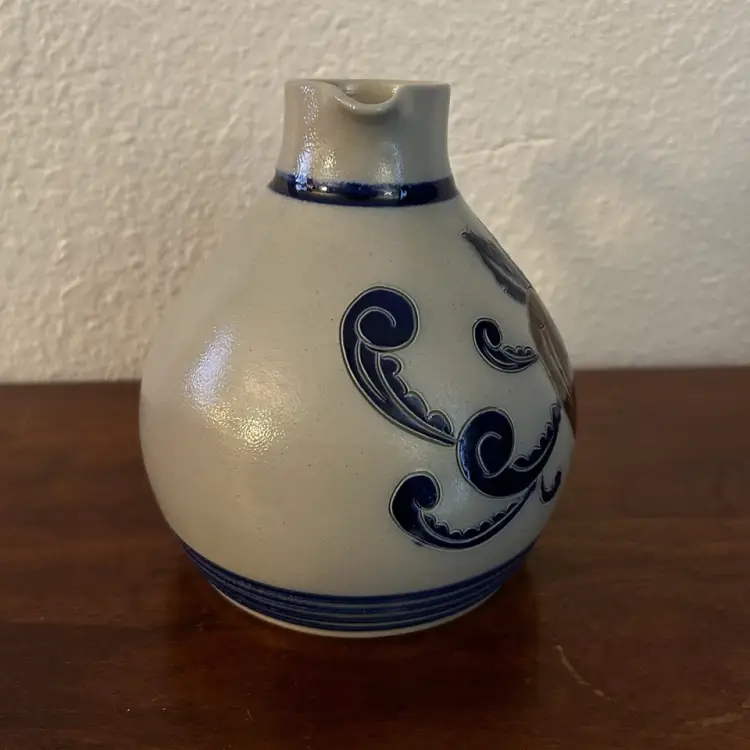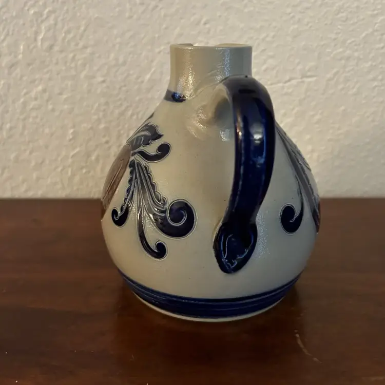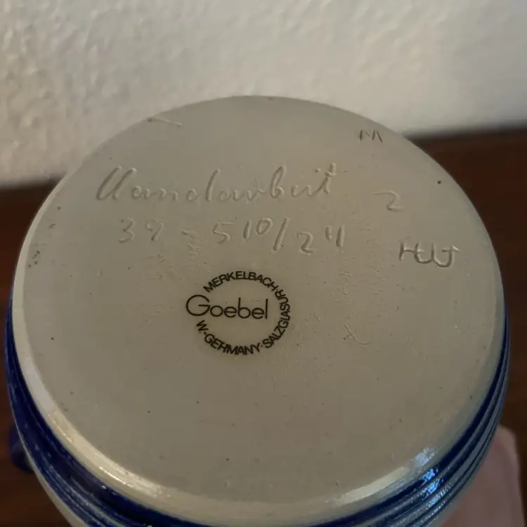 Vintage Goebel Merkelbach Salt Glazed Cobalt Blue Jug W Germany Signed Pitcher