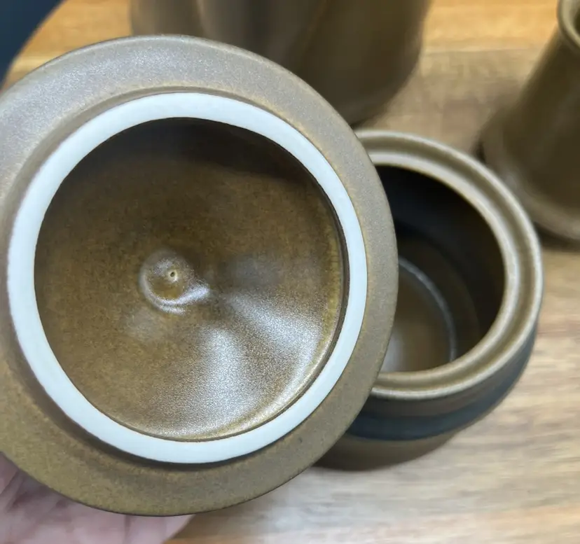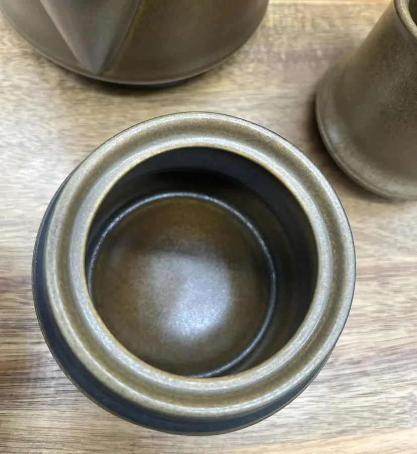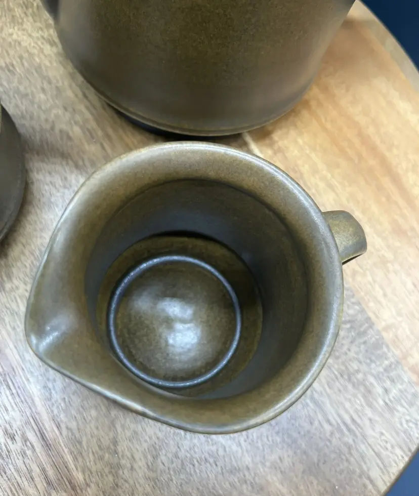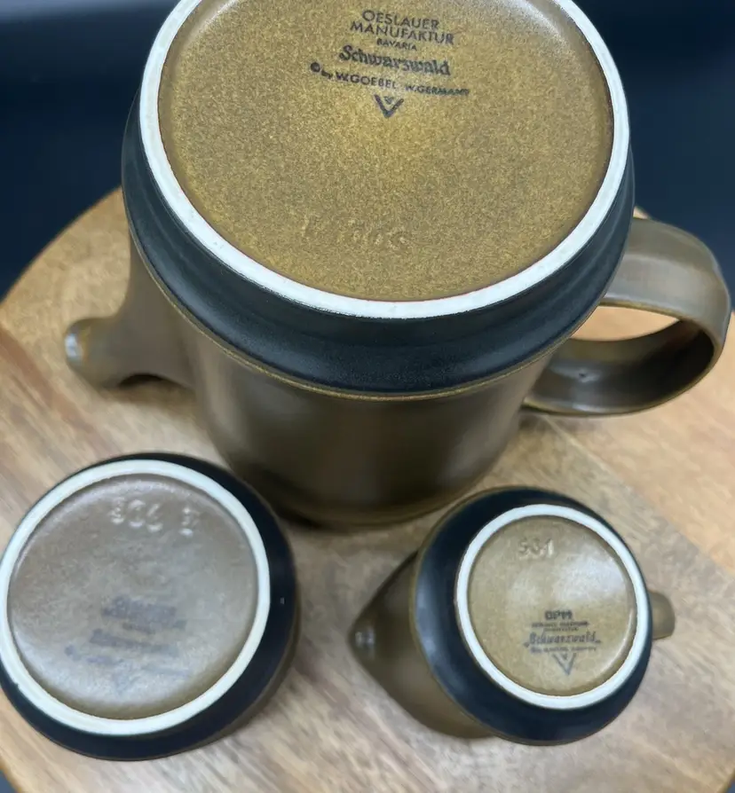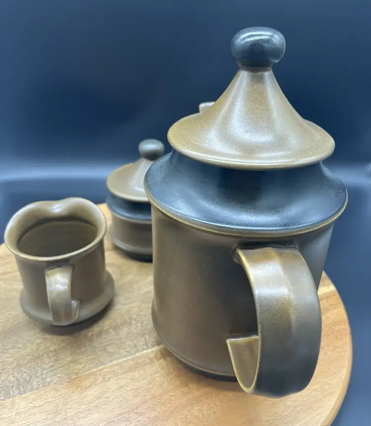 Includes teapot with lid, sugar bowl with lid, and creamer. Mid-20th century. Matte finish. Example of vintage European ceramics. Perfect for 2026 warm browns and neutrals trend. Bavaria, Germany circa 1970s. Excellent condition, no chips or cracks noted. Teapot is ~9" tall, ~9" wide (handle to spout). Creamer is 3.5" tall, 4" wide. Sugar Bowl is 4.5" tall, 3.5" wide.