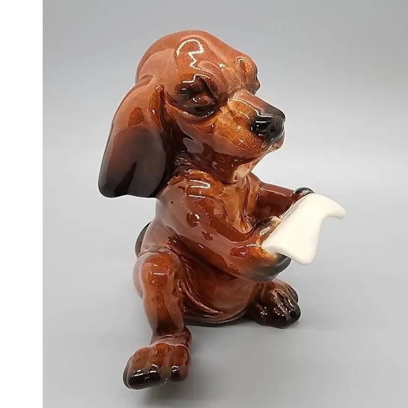 This adorable Goebel W. Germany singing brown Dachshund dog #33136- produced between 1979-1991- is in excellent condition. He measures 4" tall x 3 1/4" long x 3" deep. He would be a fun addition to any collection.