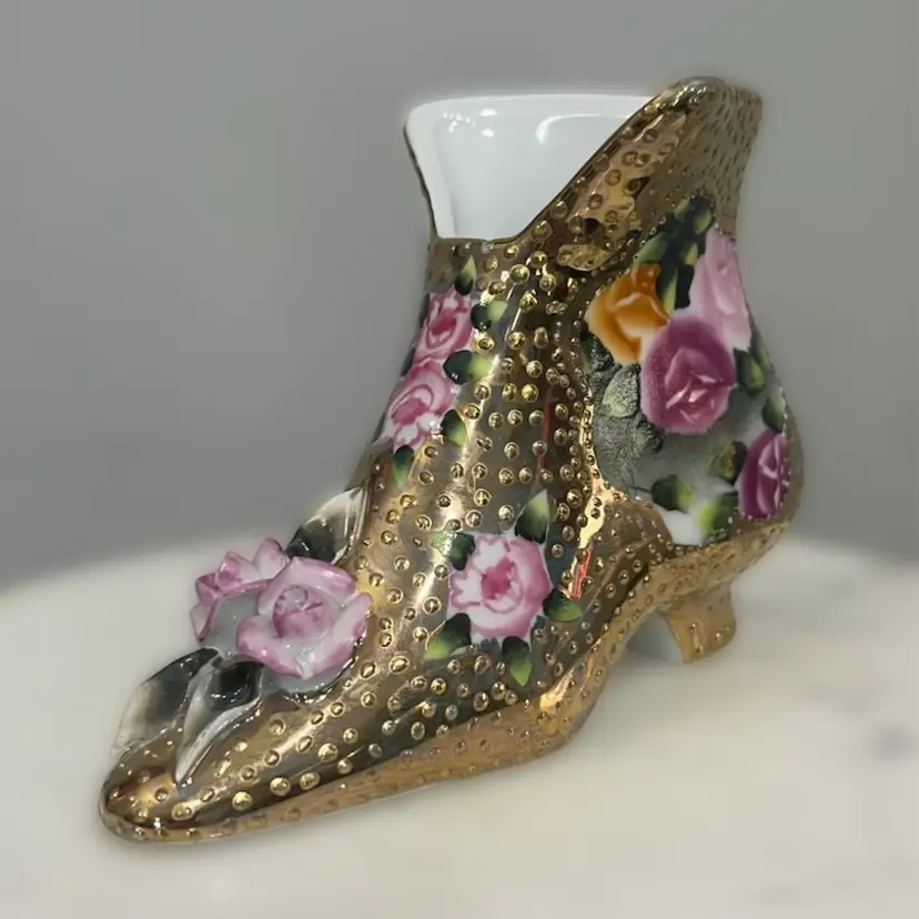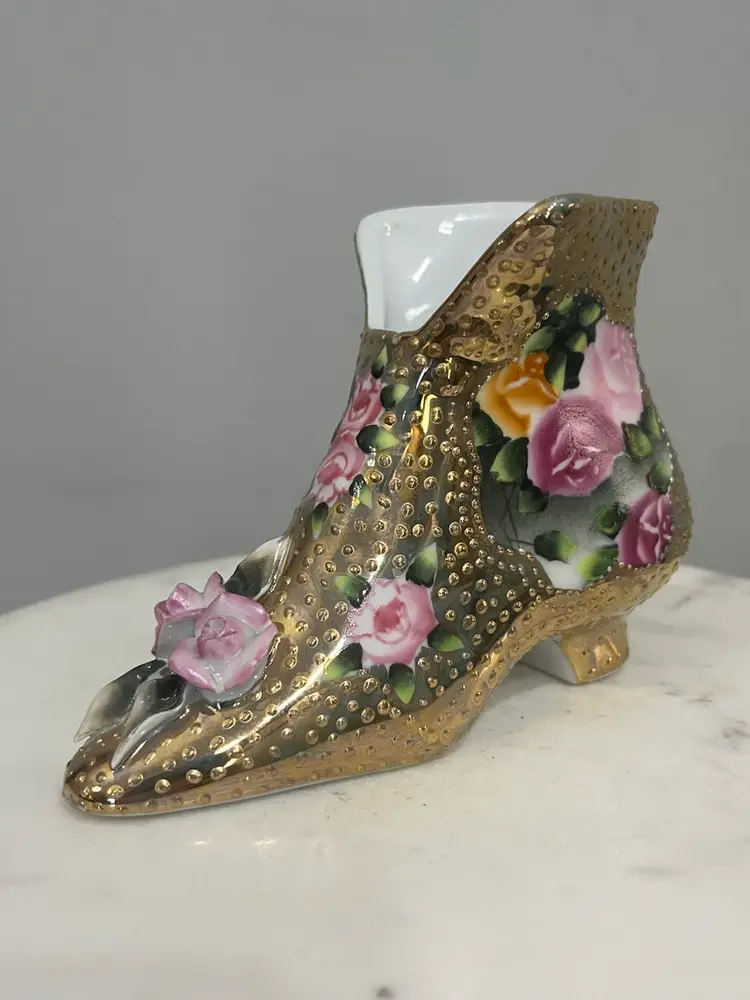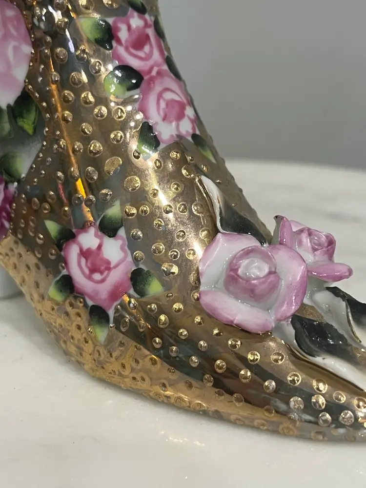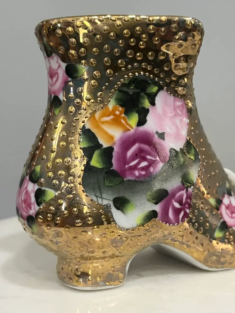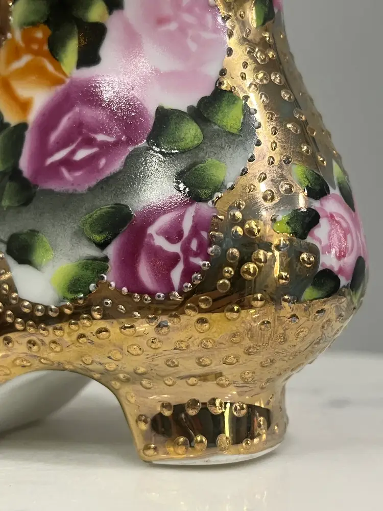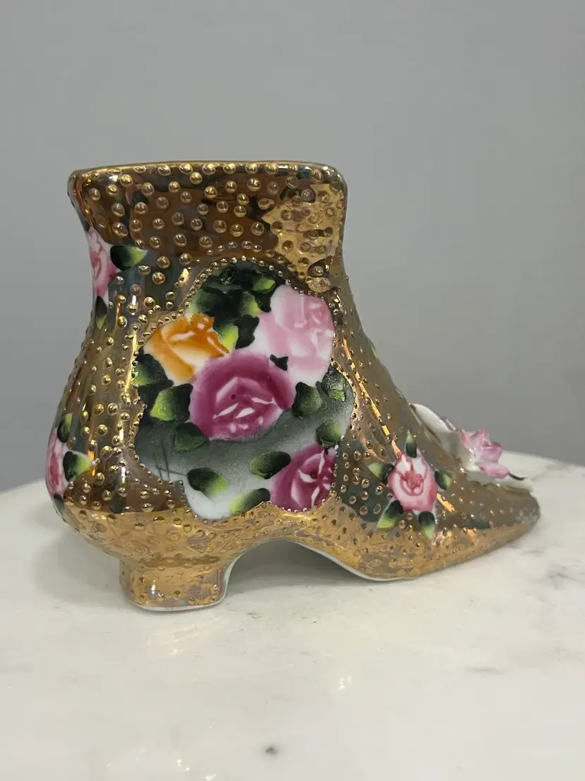 In decent preowned condition. Some fading to some of the gold details as shown. A few small “chips” to some of the raised bumps as shown. Please review all photos for details. Measures 4” tall and 5.5” long. Message me with any questions.