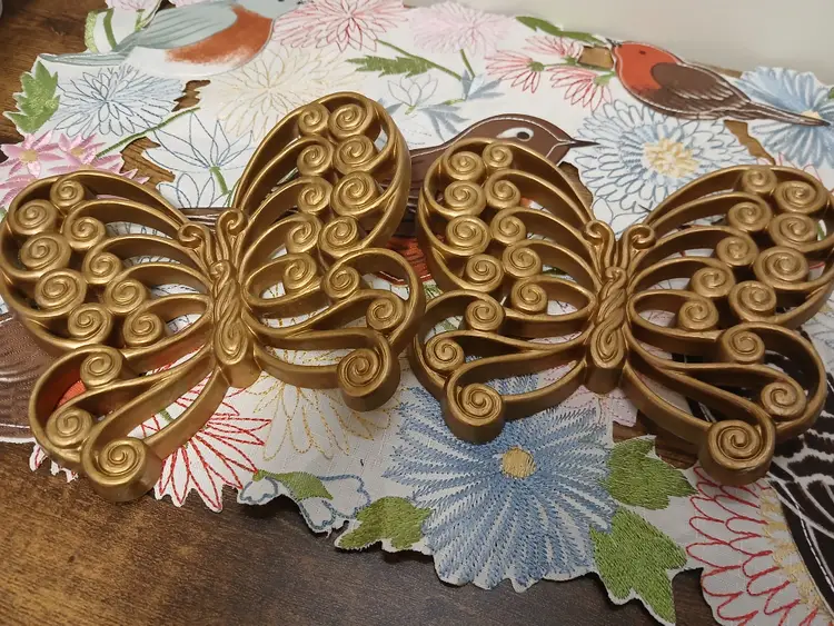 Burwood Product Co. Add a touch of whimsy to your space with this vintage gold butterfly wall decor. Its intricate swirls and elegant design make it a standout piece for any room. Perfect for those who love unique and charming accents.
