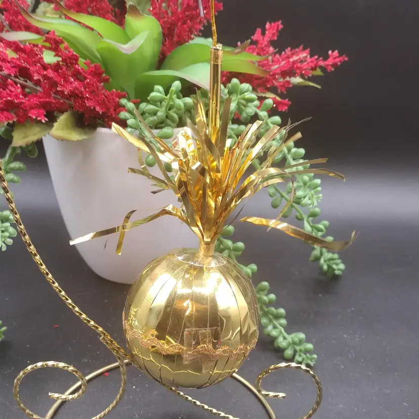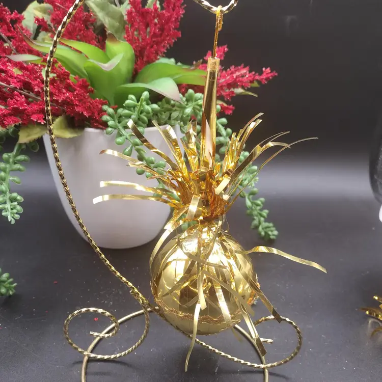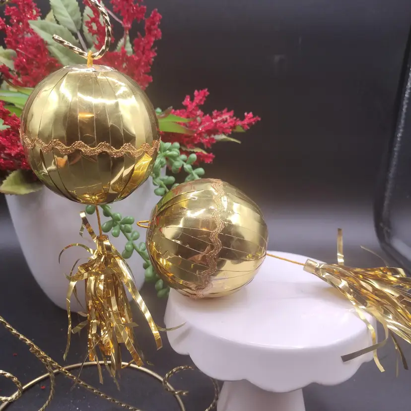 ntage Gold Foil/Tinsel Cascading/Waterfall Christmas Ball Ornament set of 2. Measures 8 inches