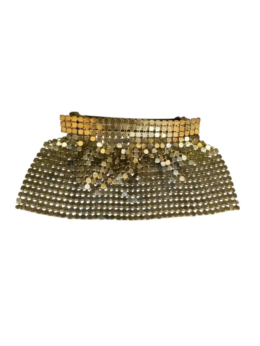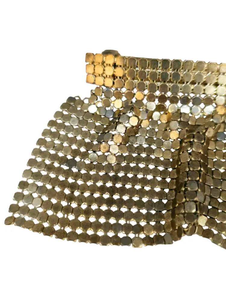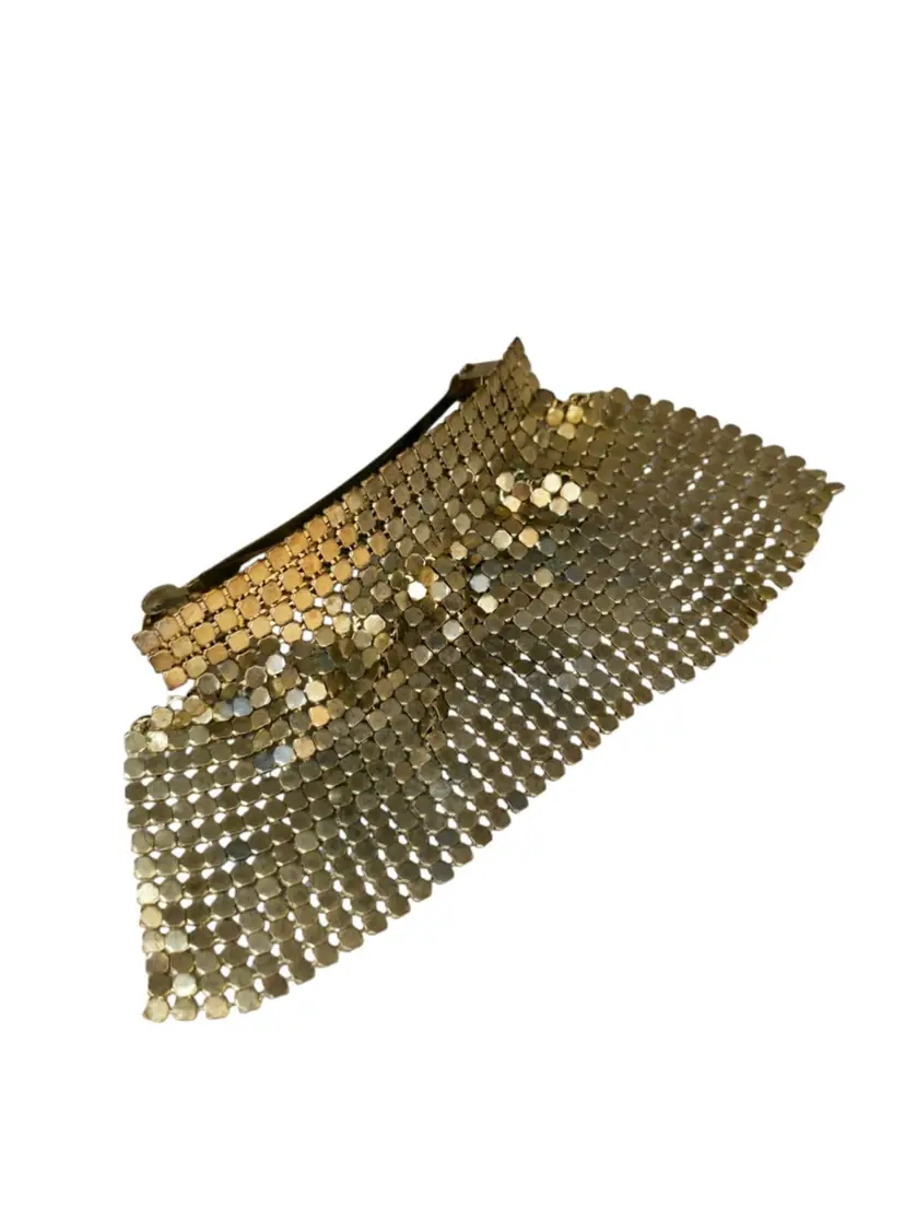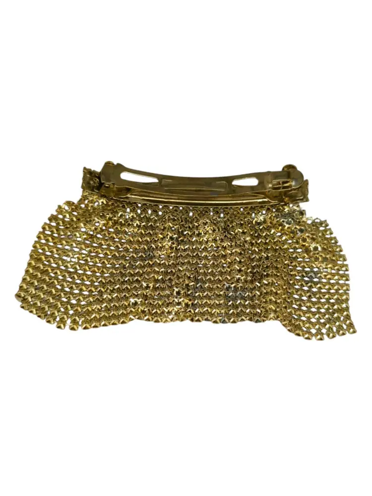 Size: 3-1/2" x 2" down. Color: Gold Condition: Good vintage; some dark areas Era: Circa 1980s Signed: None