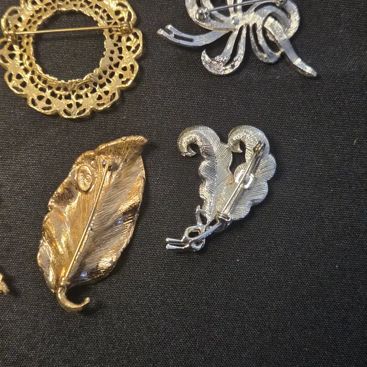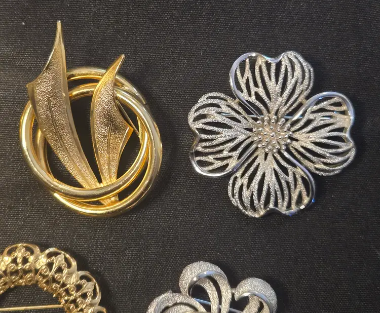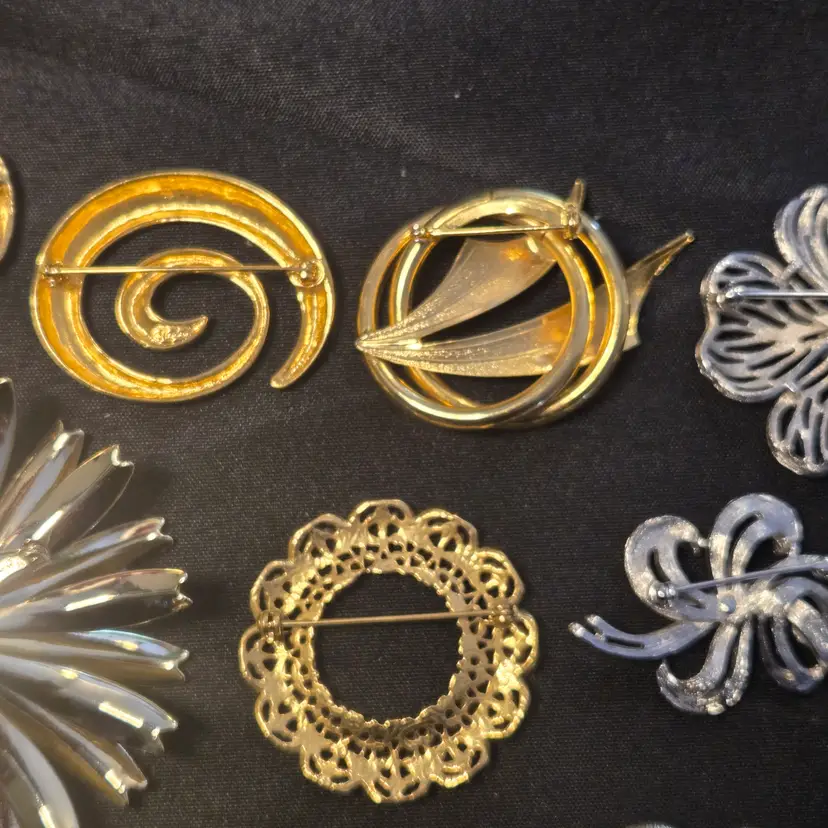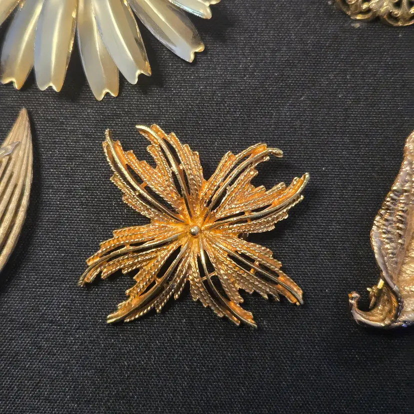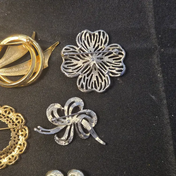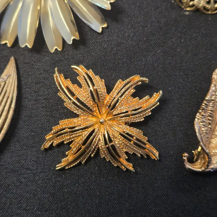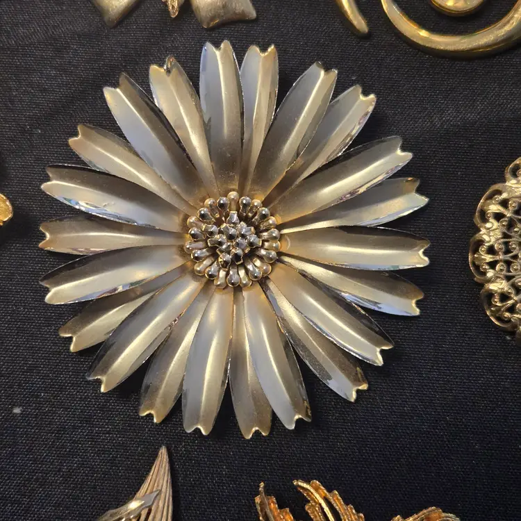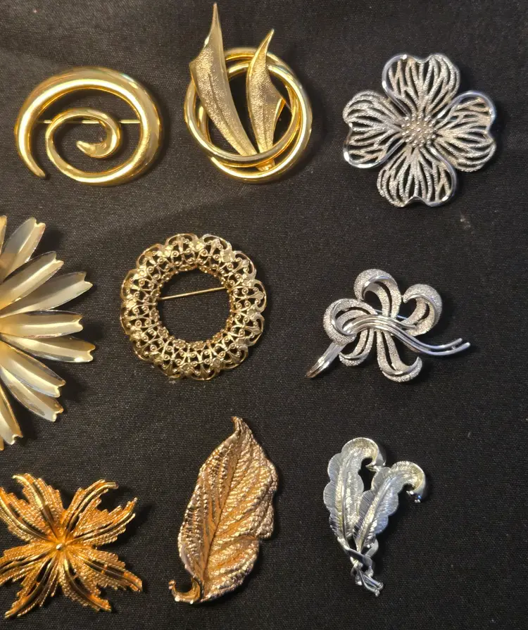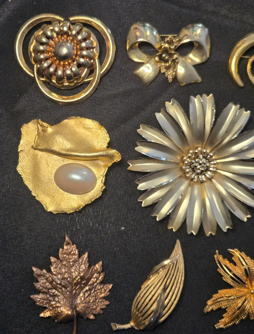 14 VTG GOLD SILVER TONE COSTUME JEWELRY BROOCH LOT TRIFARI NAPIER AAi
