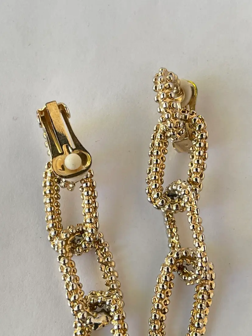 These gold-tone textured chain link earrings are clip-on and full of vintage glam.