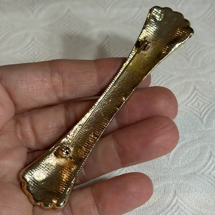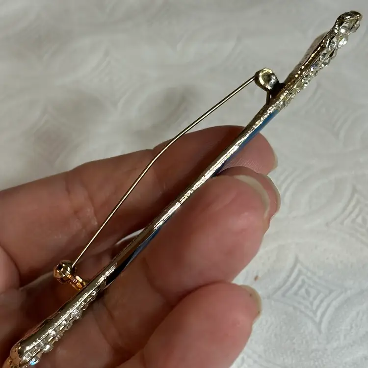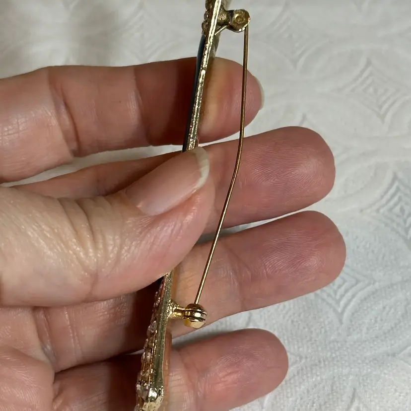 Very pretty! Minor wear on enamel. Pin is bent but functional. Nice overall.