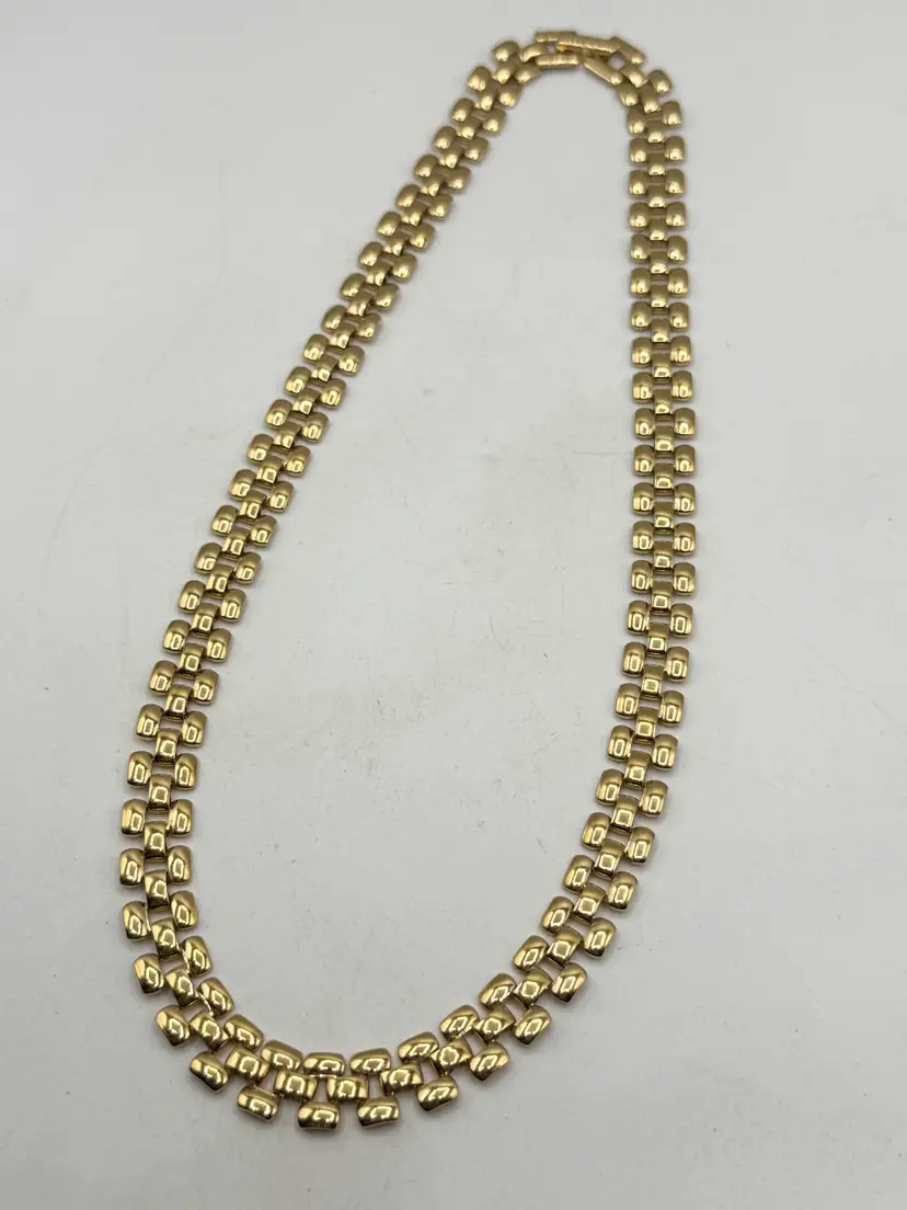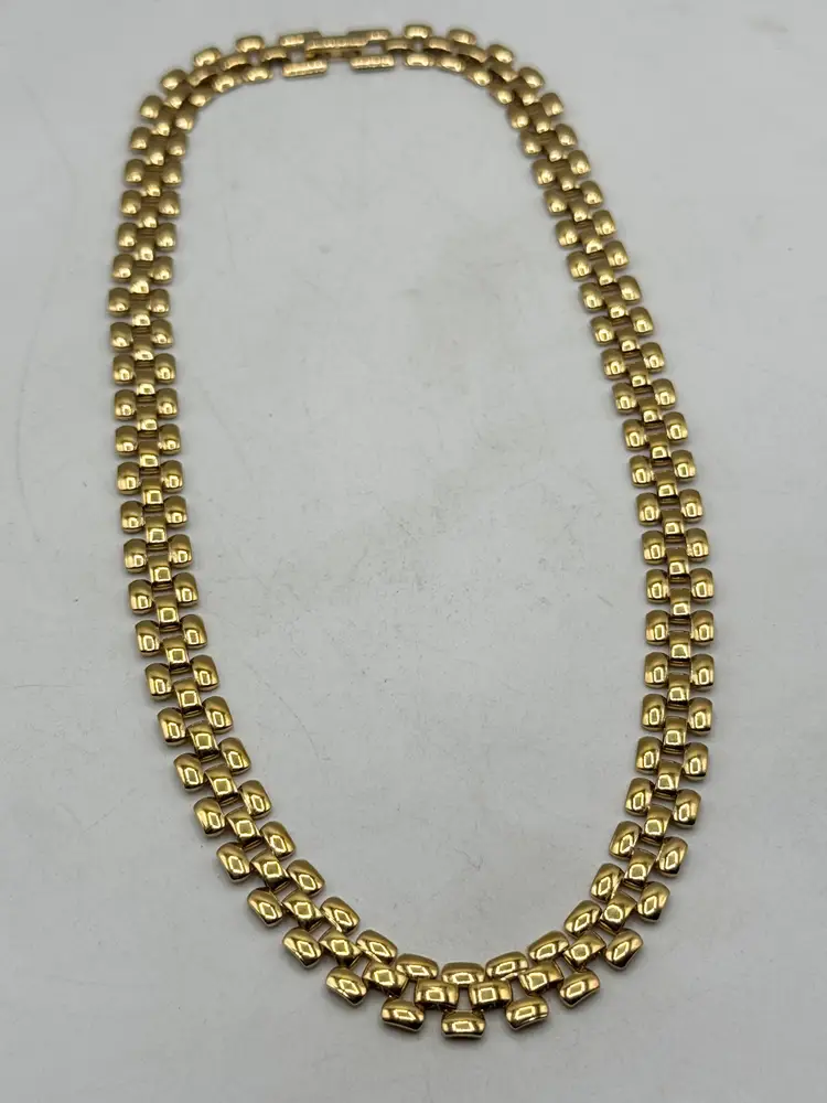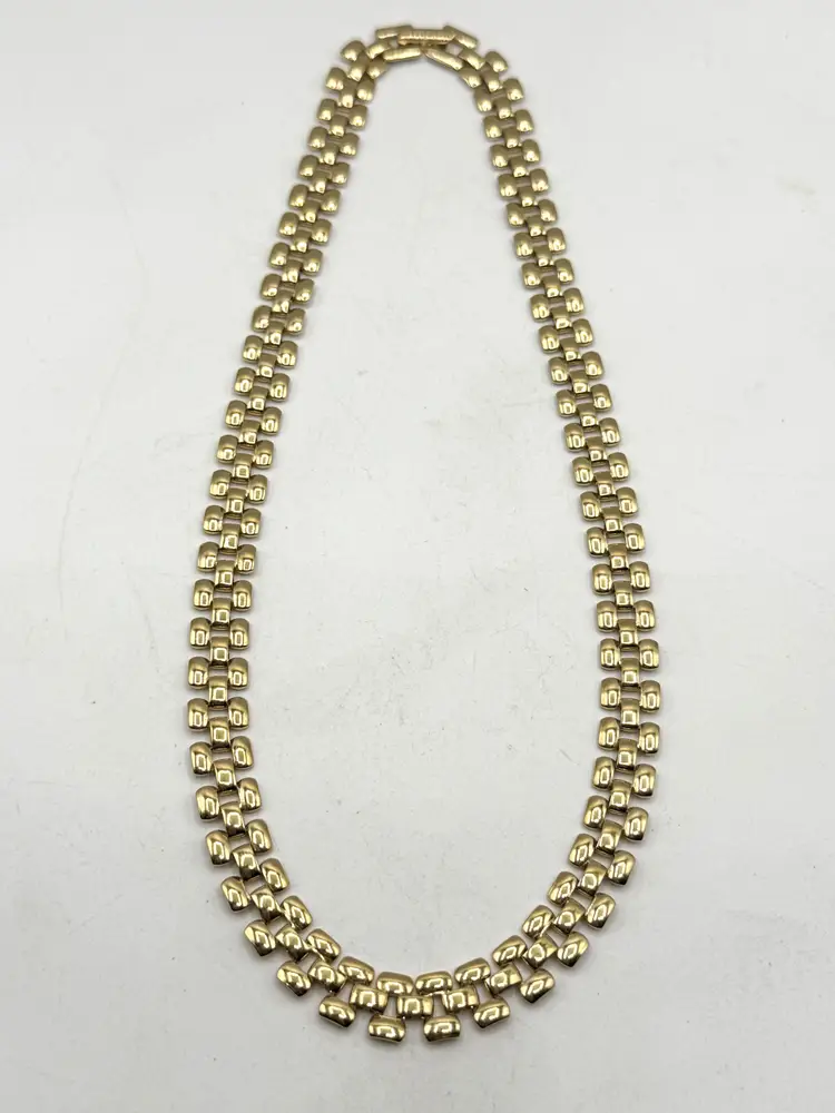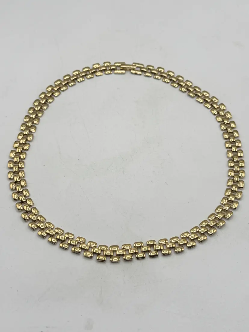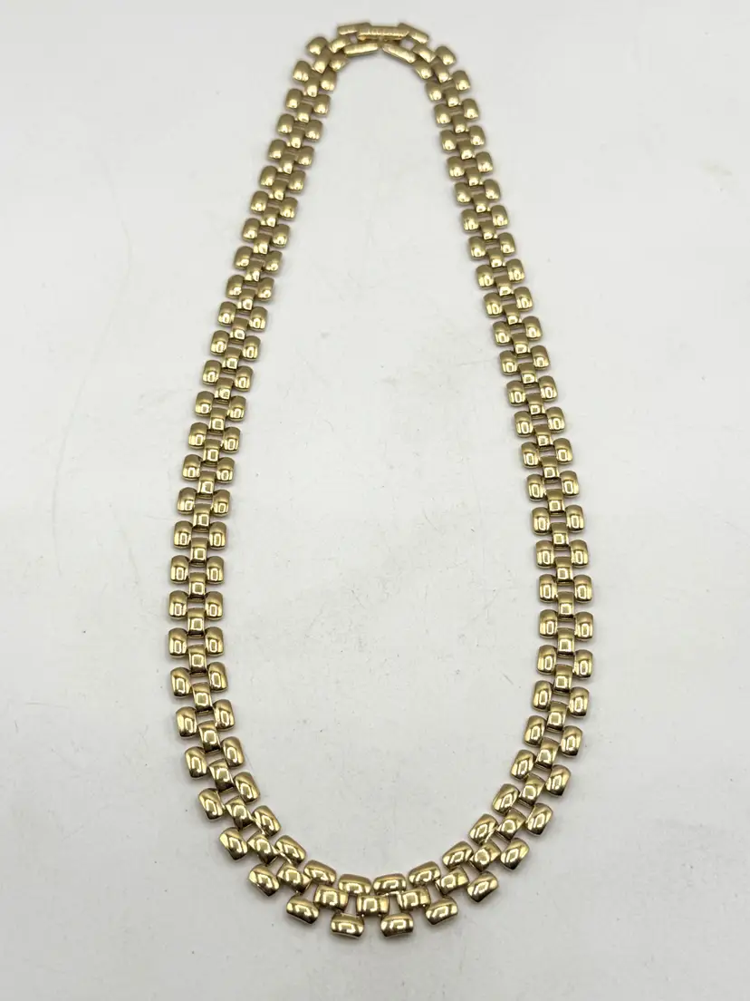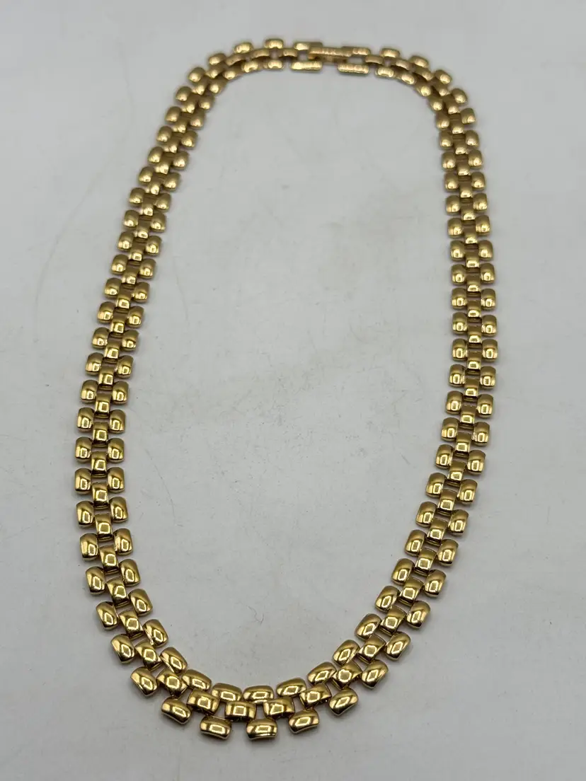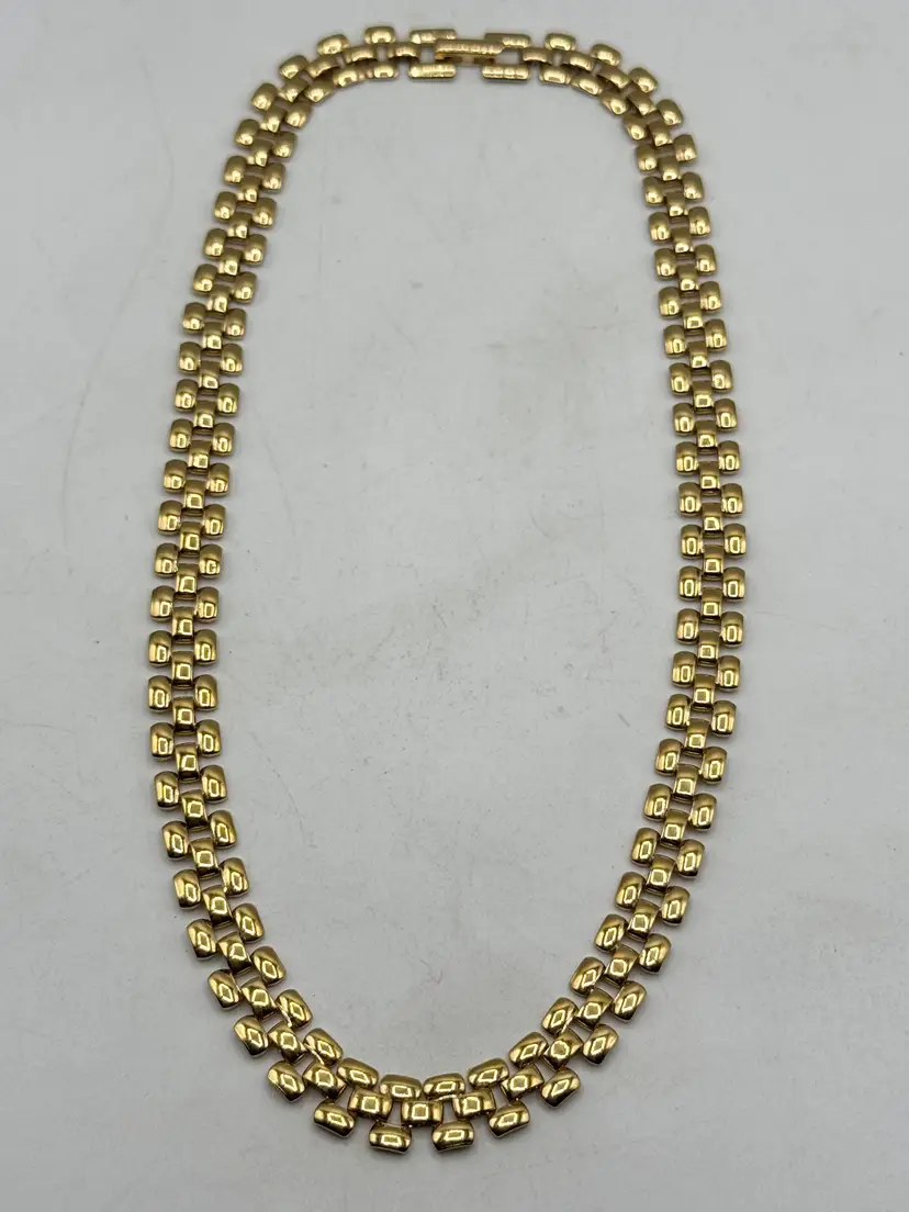 Vintage gold tone collar panel link necklace. Fold over clasp, gold tone collar necklace. MN54G.