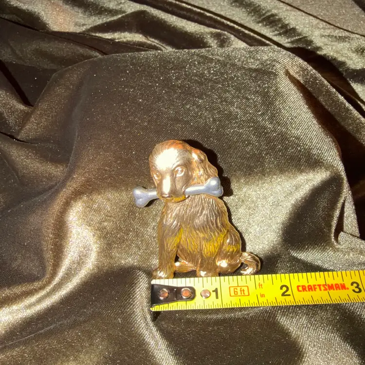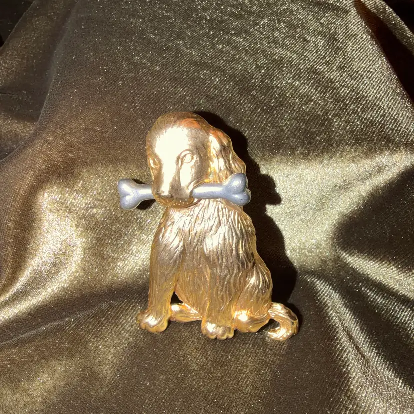 Vintage Gold-Tone Dog Brooch With Pewter Bone