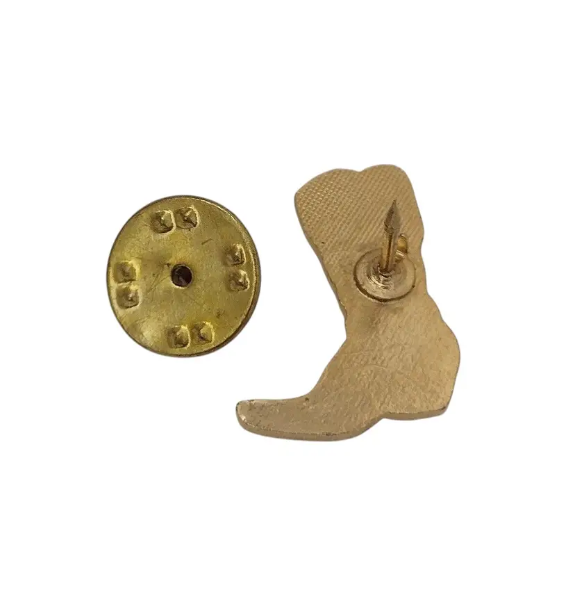 This is a very nice gold tone Western boot pin with multicolor enamel. Pin measures 1" tall x .40" wide.