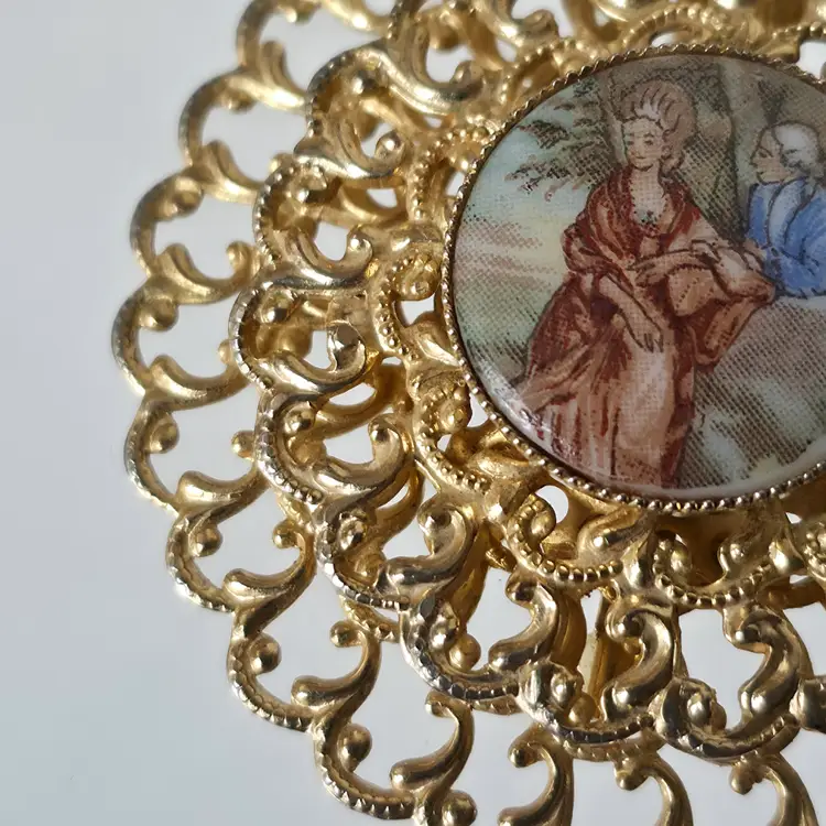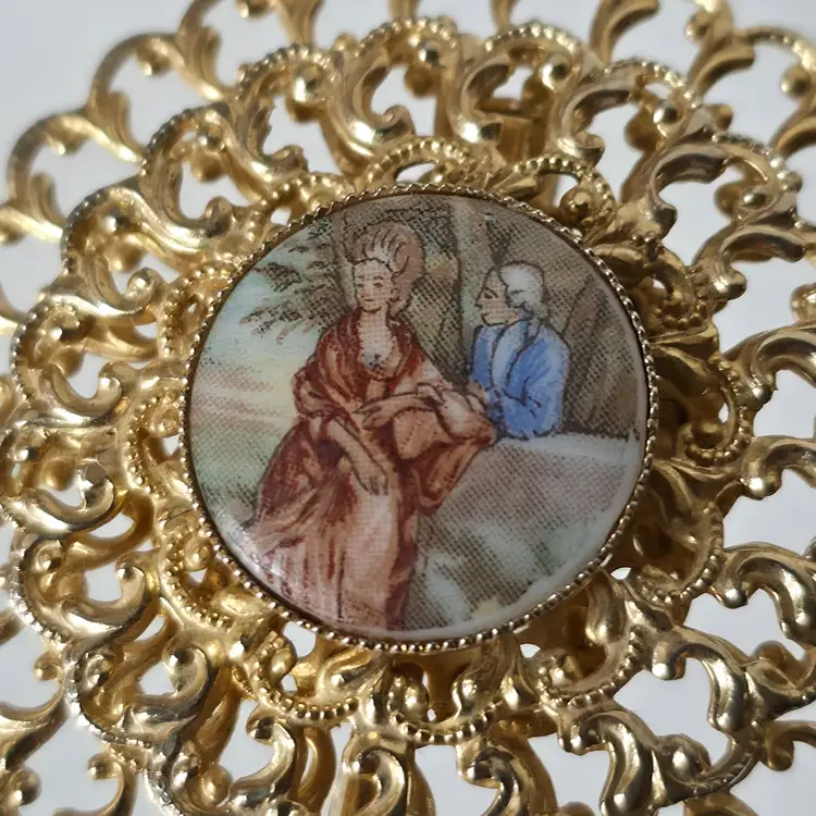Please review photos carefully prior to purchase Measurements are approximate Some wear / color loss to metal around edges