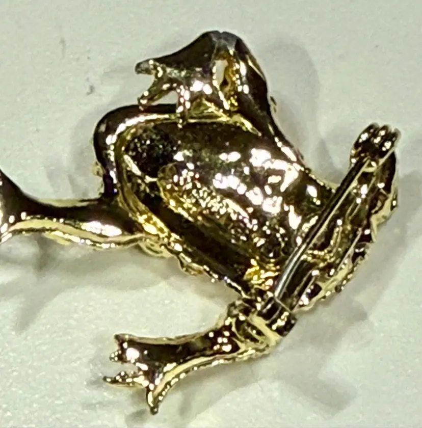 Vintage gold-tone frog brooch, collectible amphibian pin, textured animal jewelry, sparkling frog lapel pin, retro costume jewelry, golden frog brooch, frog lover gift pin, vintage frog collectible jewelry.