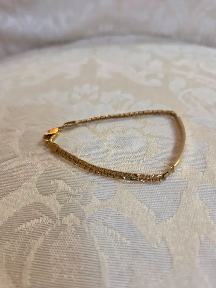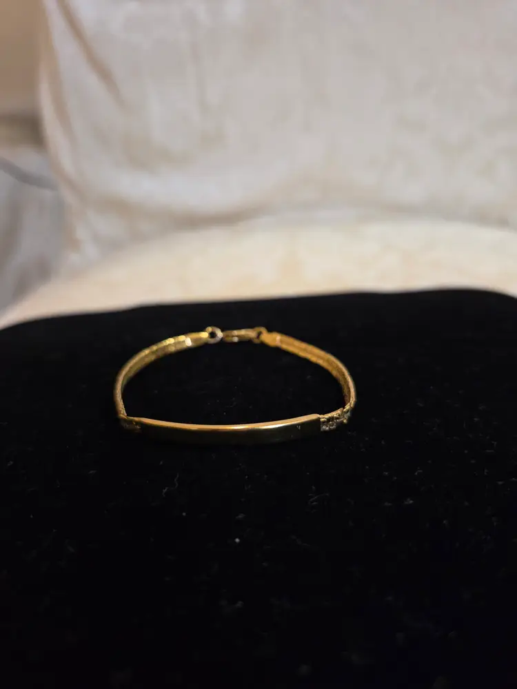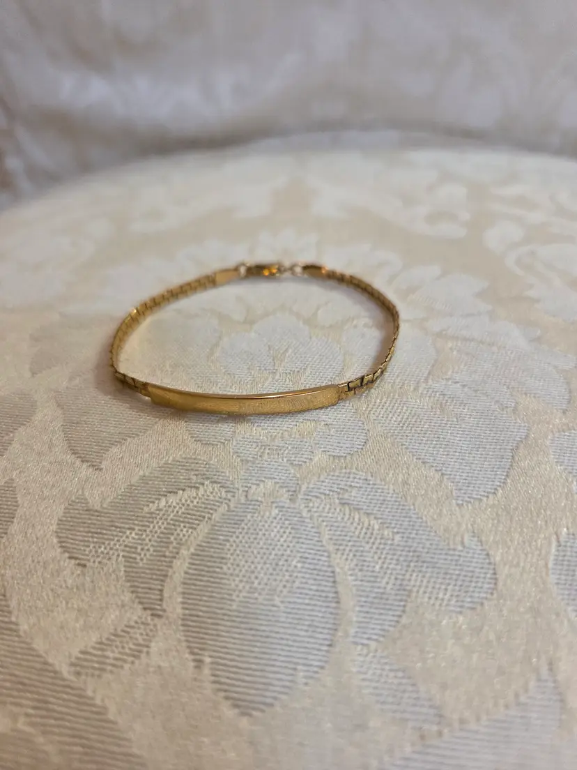 Vintage gold tone nugget style ID bracelet 6". Bar on bracelet has not been engraved. Good condition.