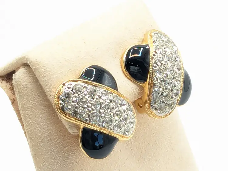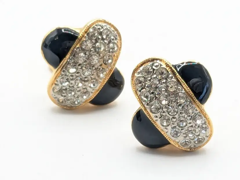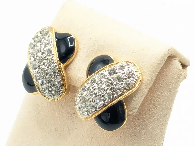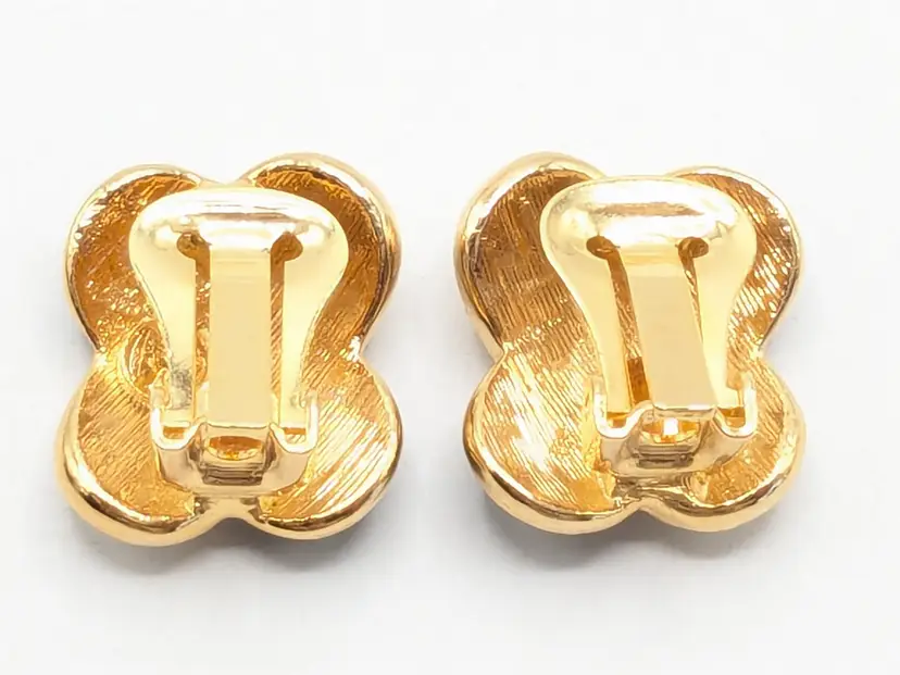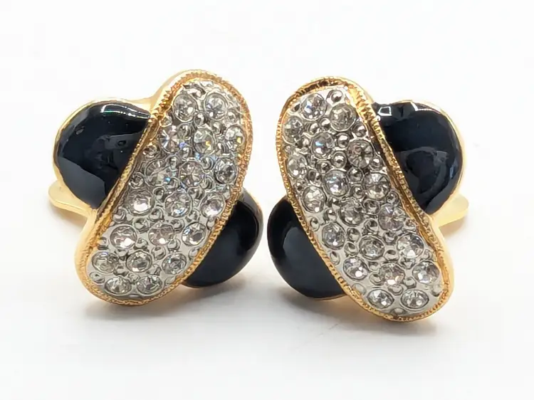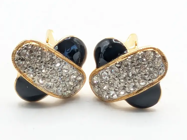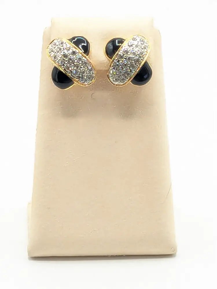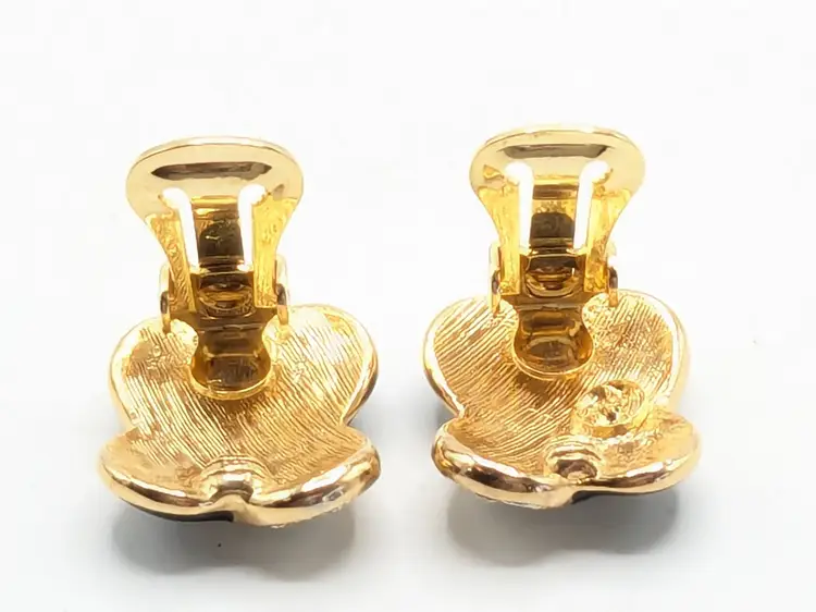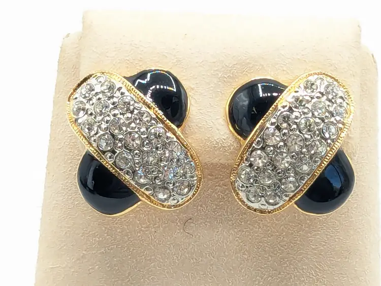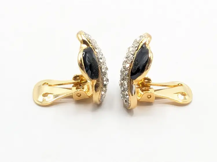 Good condition. Gold Tone is bright and shiny with no color loss. Rhinestones are all present and very sparkly. Clip on. Earrings measure 3/4" in length and 5/8" wide. EN3