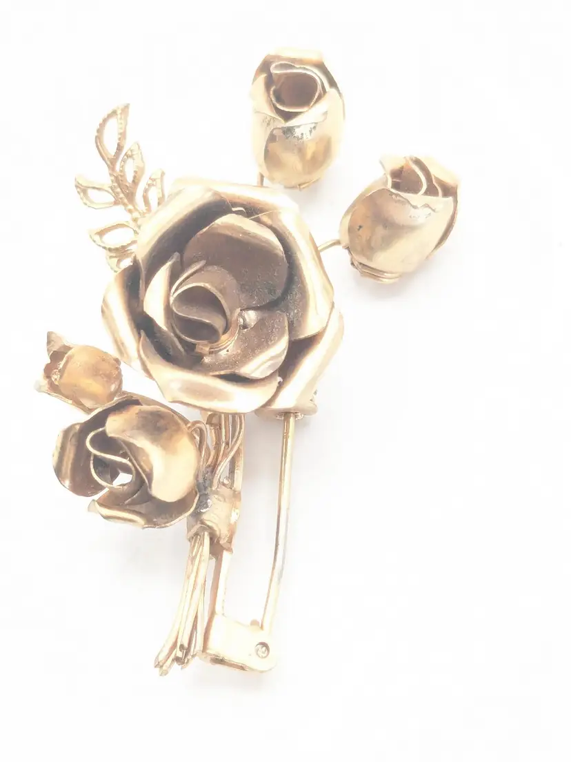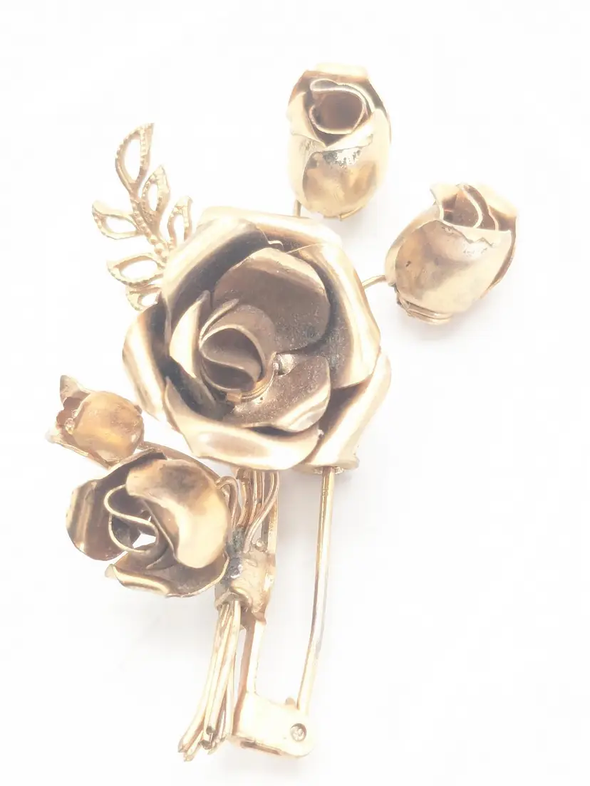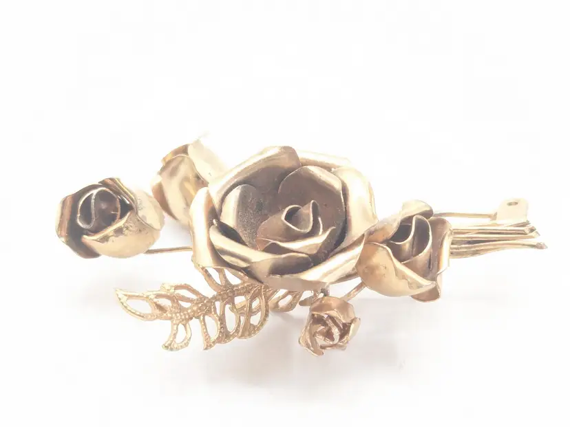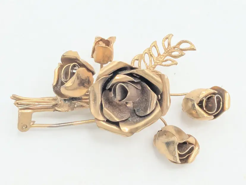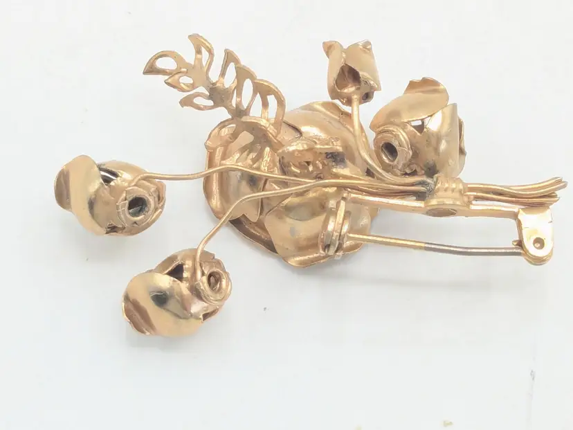 Good condition. Features a beautiful rose bouquet design in gold tone. Measures 1 3/4" length and 1 1/4" wide. (EN1)