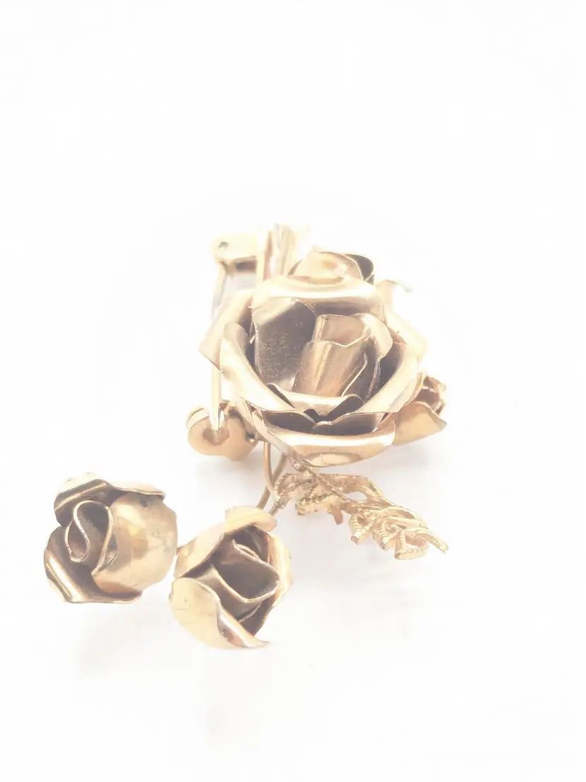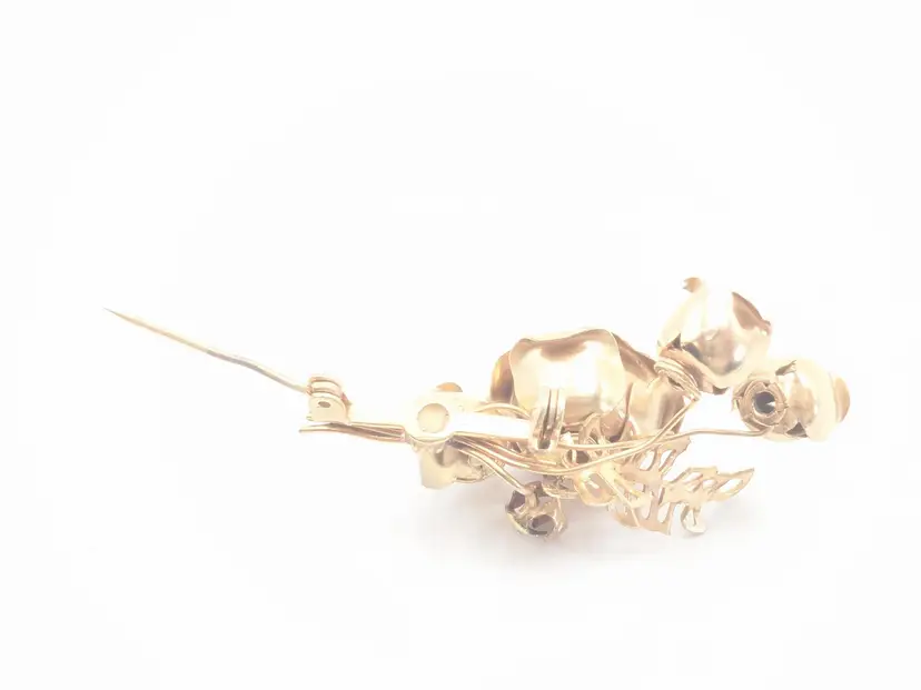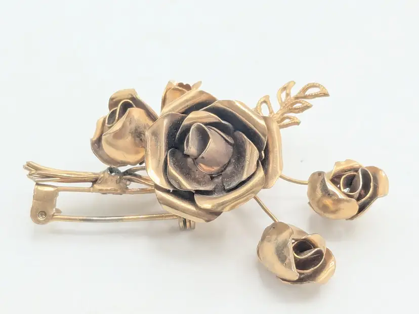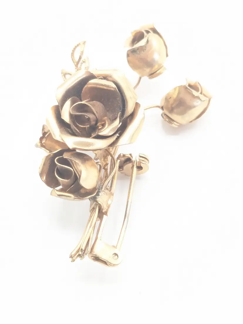 Good condition. Features a beautiful rose bouquet design in gold tone. Measures 1 3/4" length and 1 1/4" wide. (EN1)