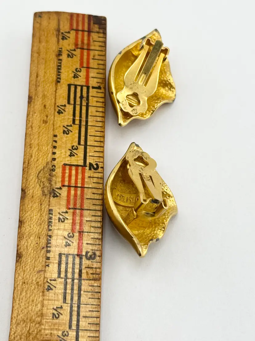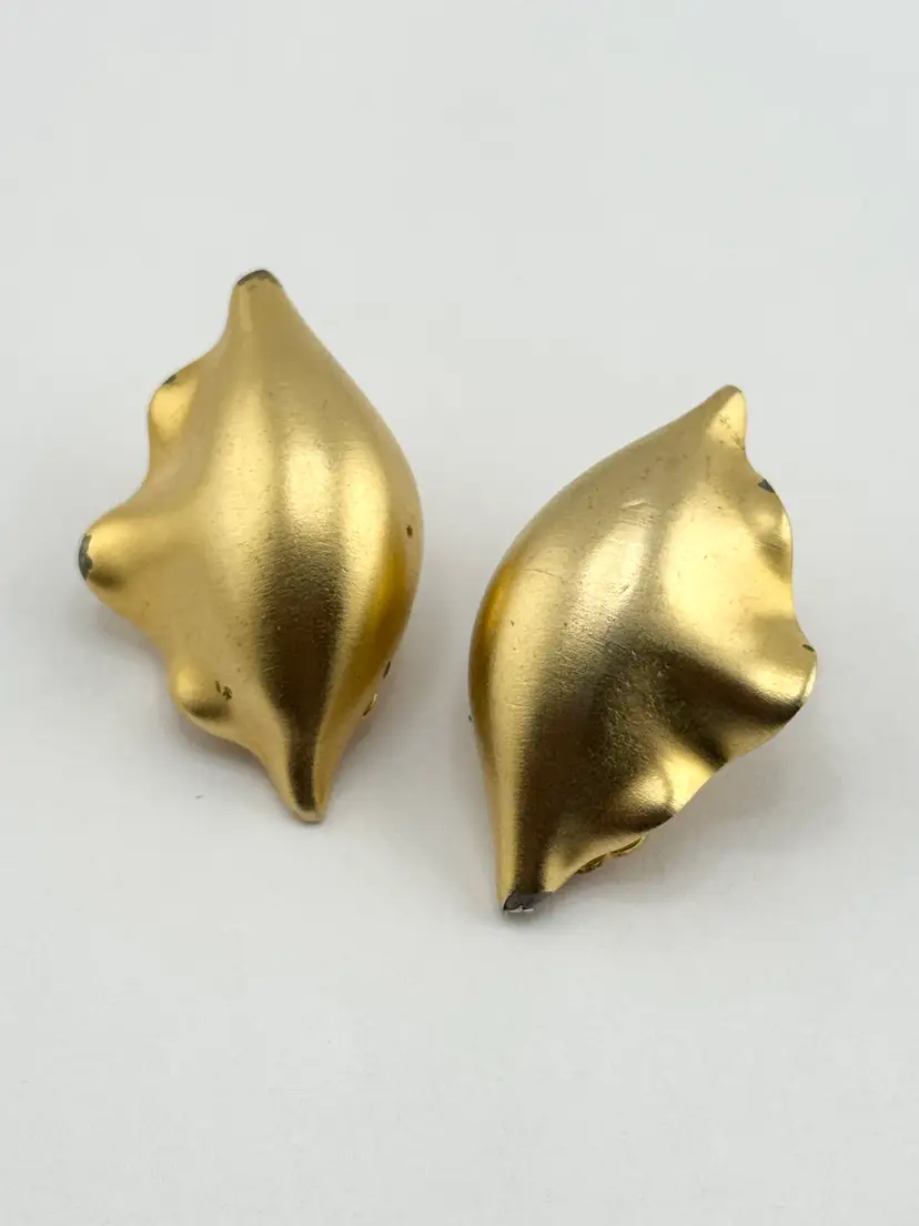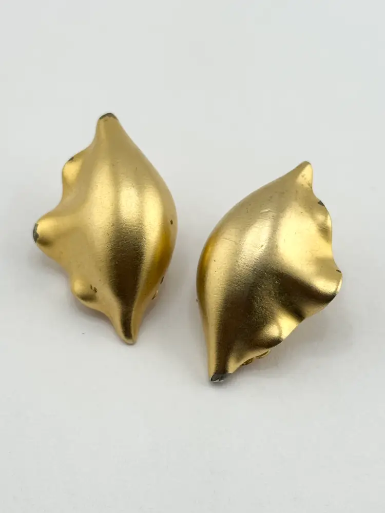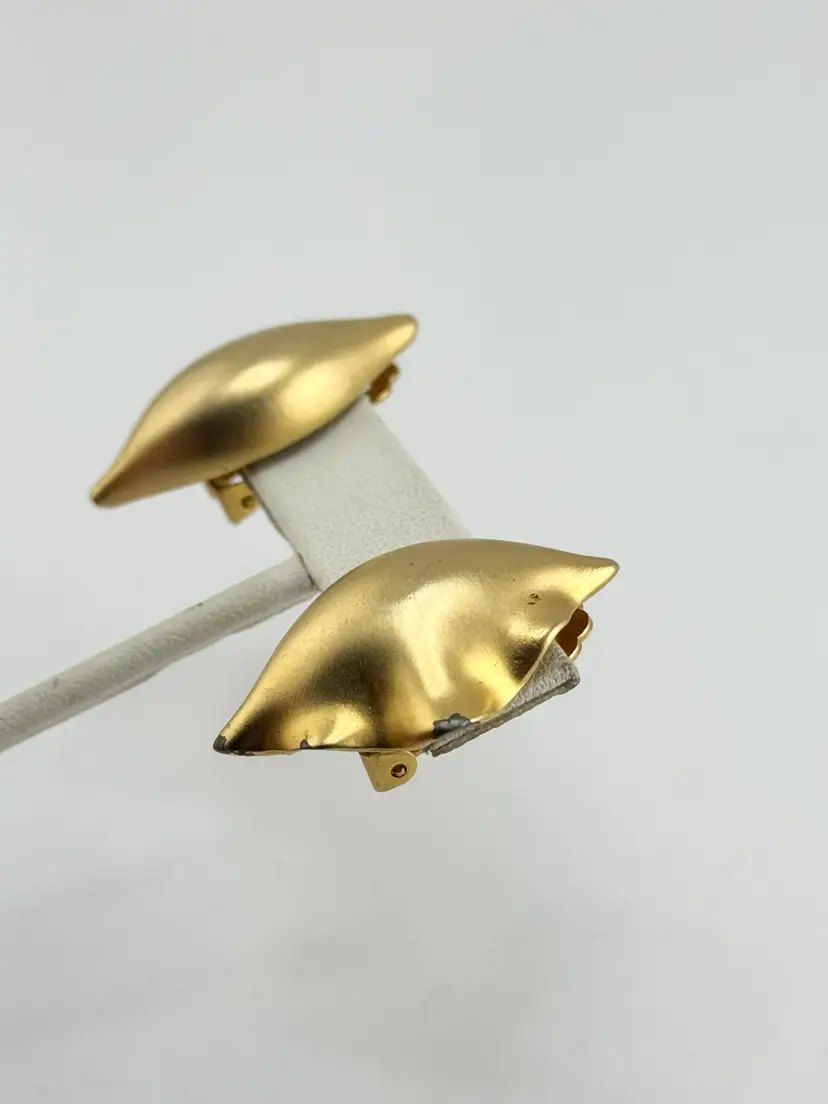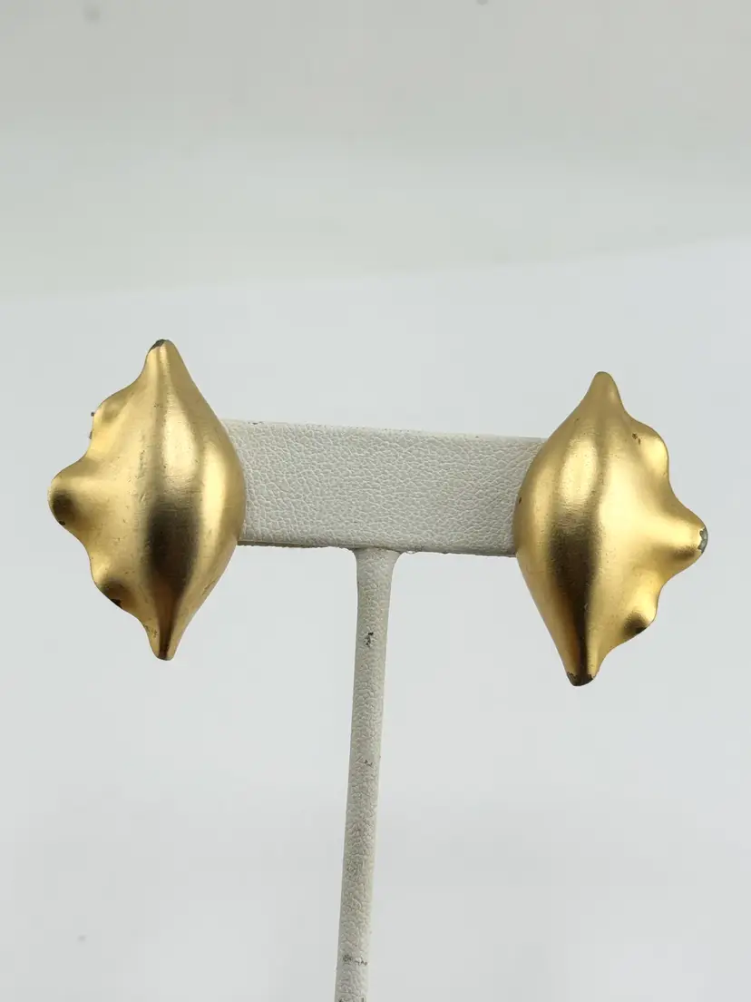 Vintage gold tone shell clip on earrings. Vintage earrings. Clip on closure. Modernist Shell earrings. MN53BN.