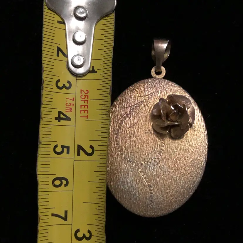 Vintage Gold-Tone Textured Rose Flower Locket Necklace Pendant