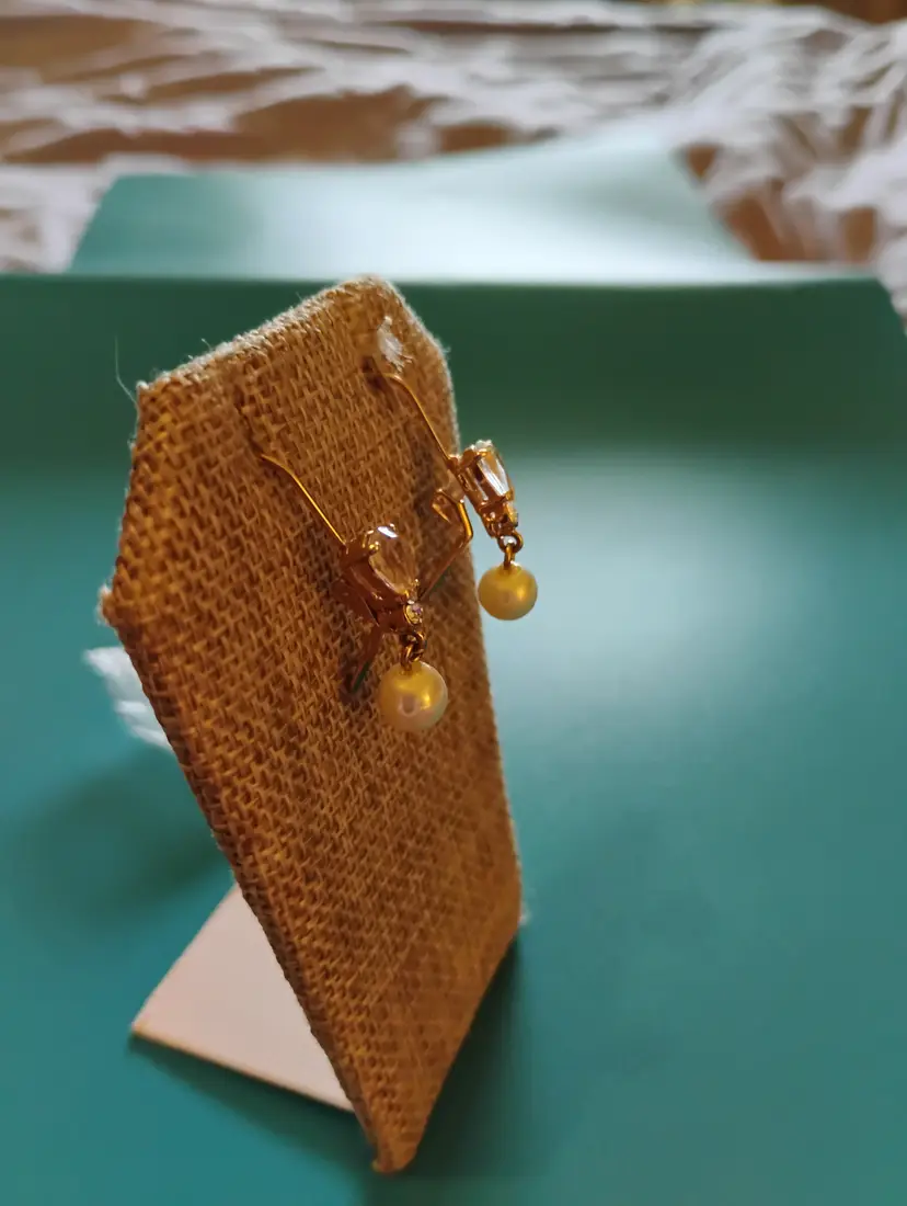 Lovey, Gold Toned, Pear Shaped Crystal and Faux Pearl, Lever back Earrings. Just the perfect little sparkle for your wardrobe.