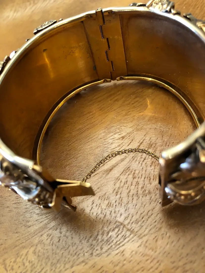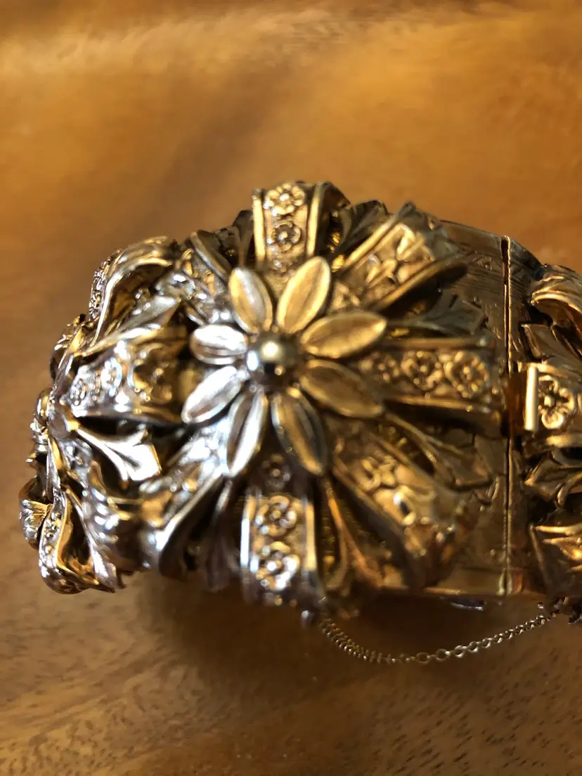 Vintage from the 1960’s. Goldtone metal.Medium wrist size.
