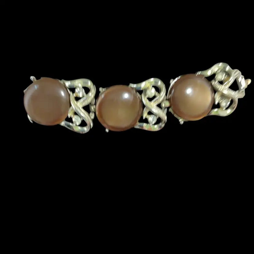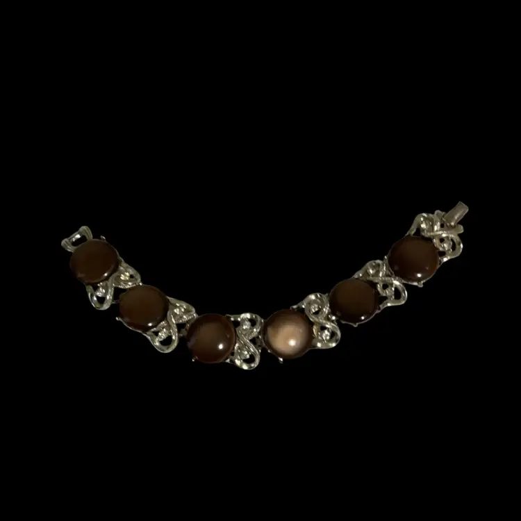 Vintage Goldtone Brown Thermoset Round Disc Link Coro Bracelet. And Clear Glass Rhinestones.