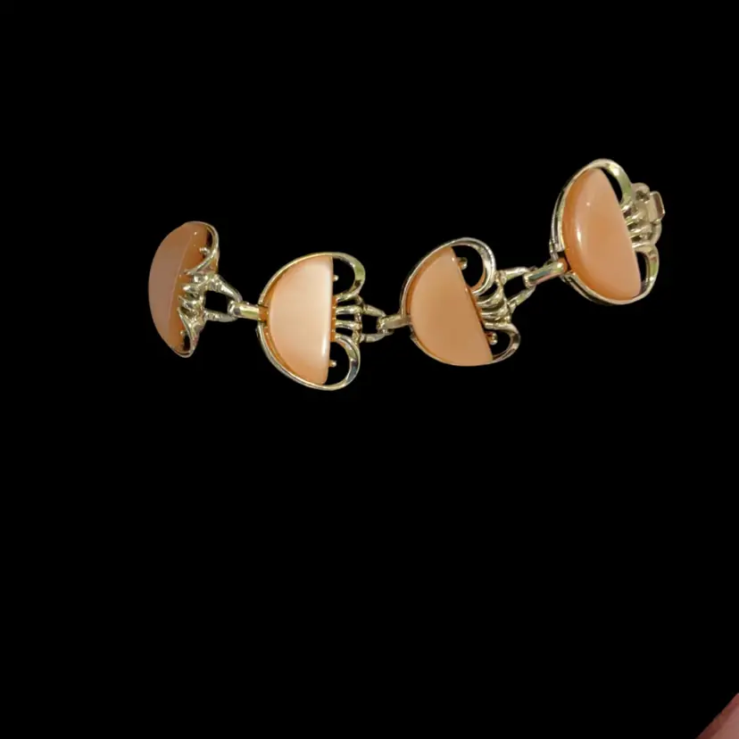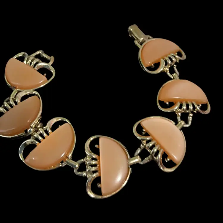 Vintage Goldtone Pearly Cream Thermoset Link Bracelet. Half Moon Design. Not Signed