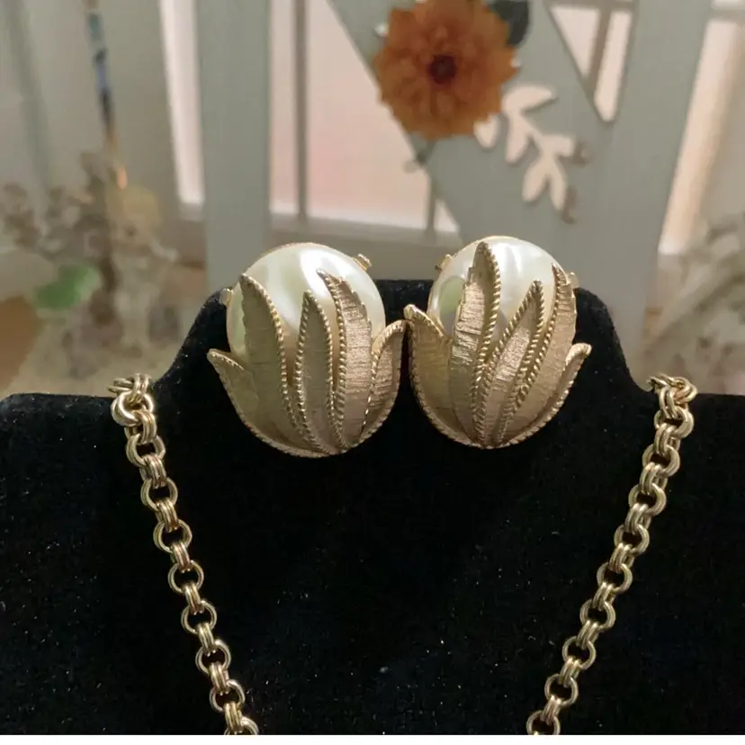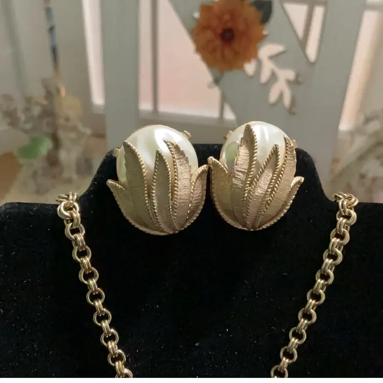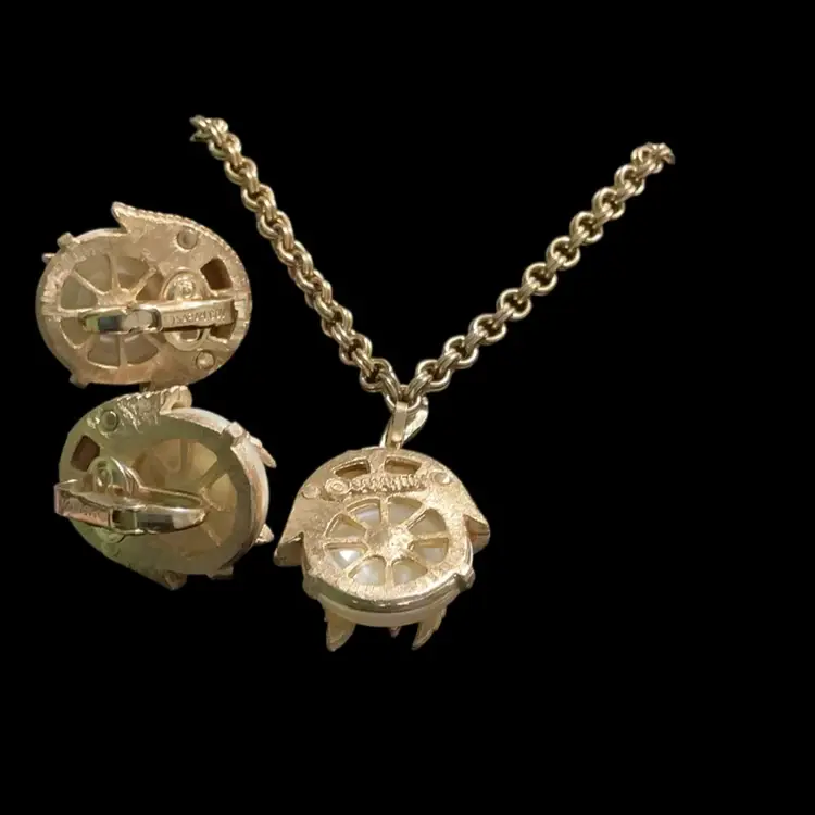 Necklace measures 18’ clip on earrings measure 1’1/4 . Signed Sarah Coventry