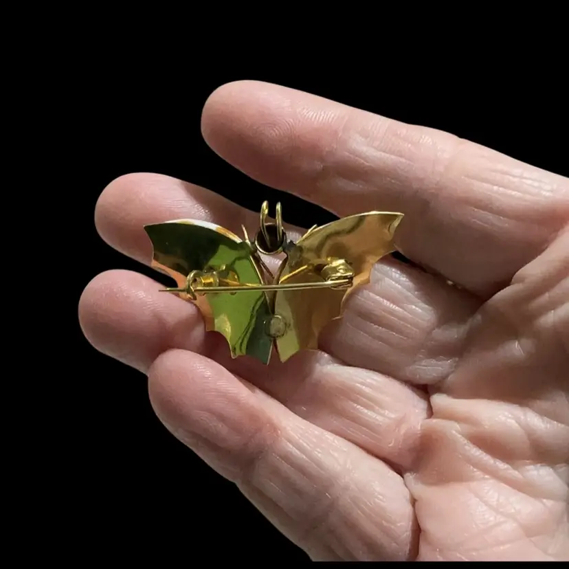 Vintage Goldtone Shell Winged Butterfly Brooch / Pin. Not Signed