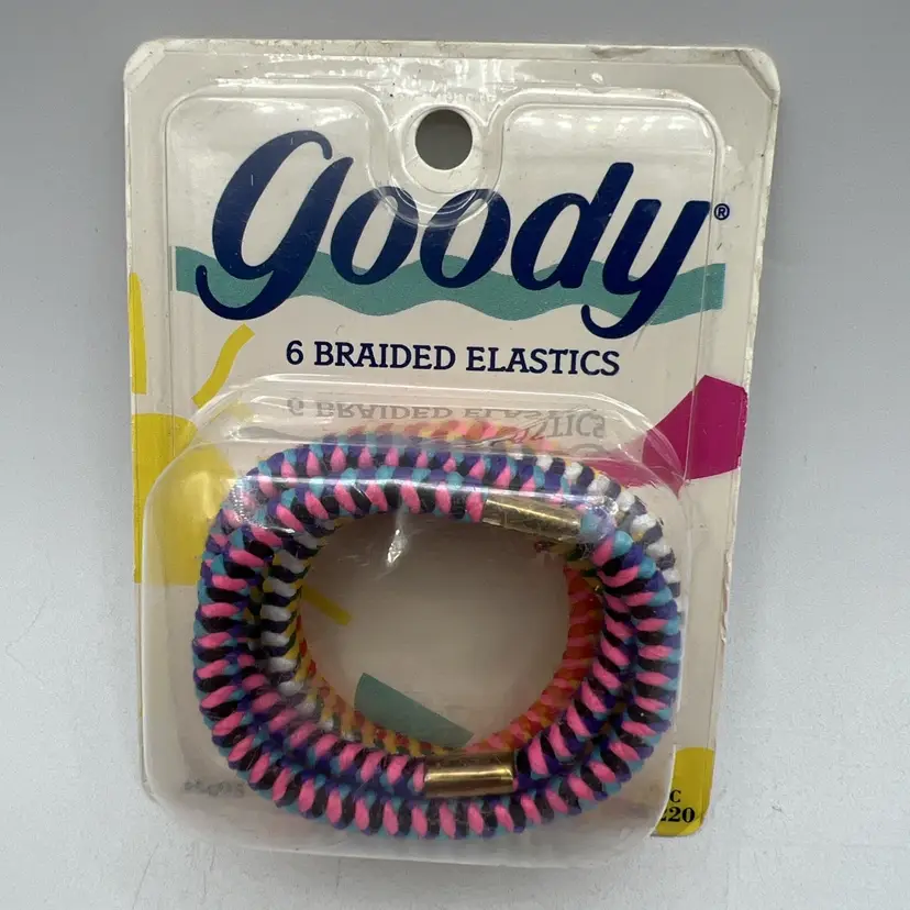 Vintage Goody 6 Braided Elastics Hair Ties 9s Ponytail Holder Colorful 1990 NEW