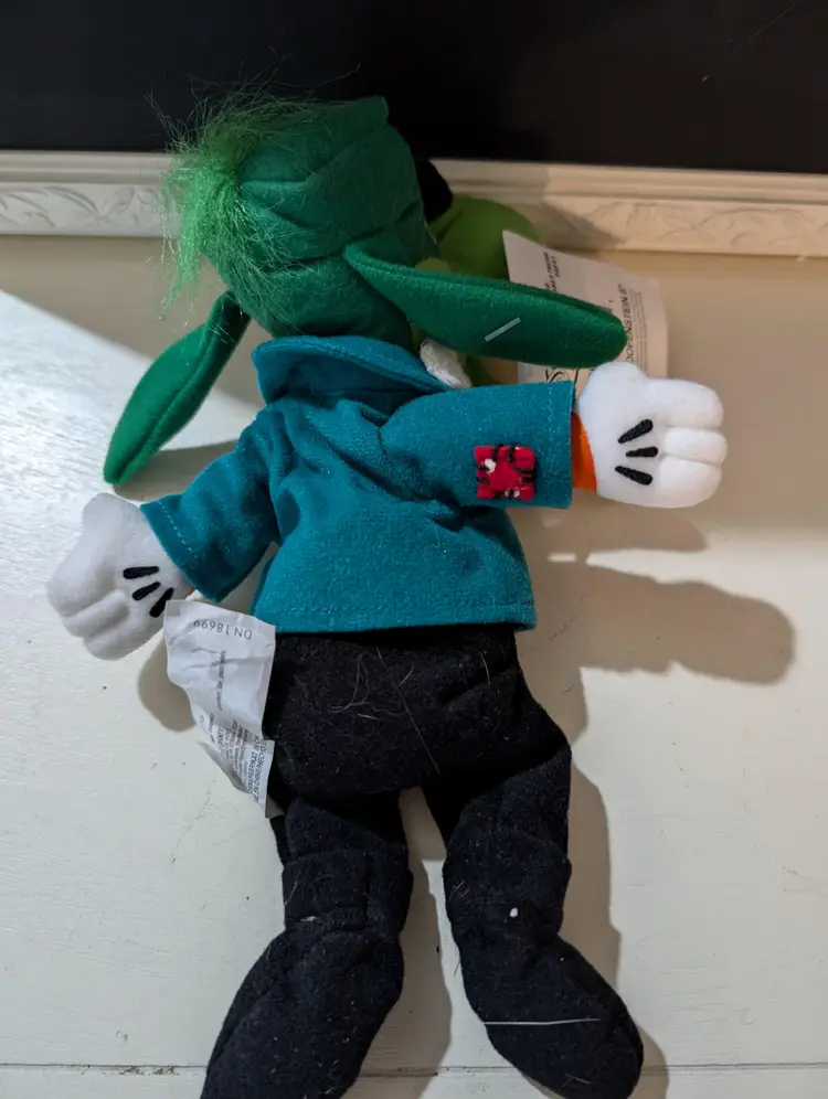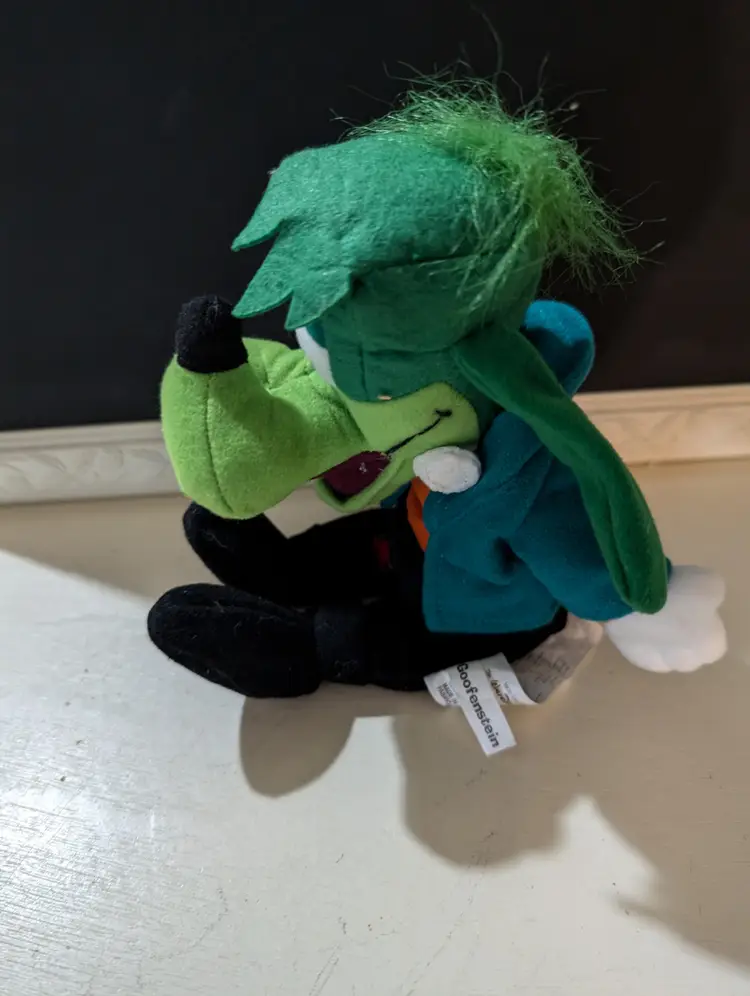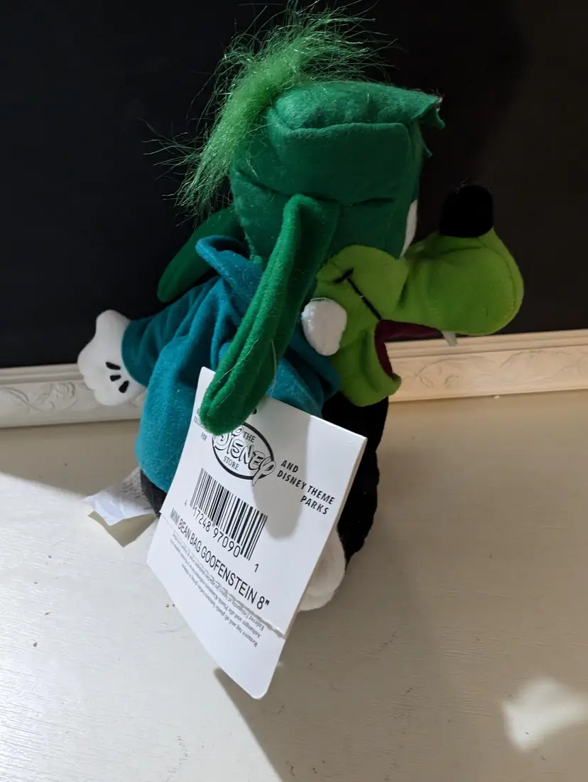 Fun and quirky vintage Goofy plush toy dressed as Frankenstein. This plush is in great condition with no visible damage and retains its original tags. Perfect for Disney fans or as a unique addition to your Halloween decor. Stands approximately 10 inches tall. A delightful collectible for any Disney or Halloween enthusiast.