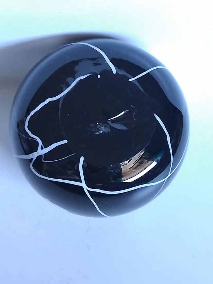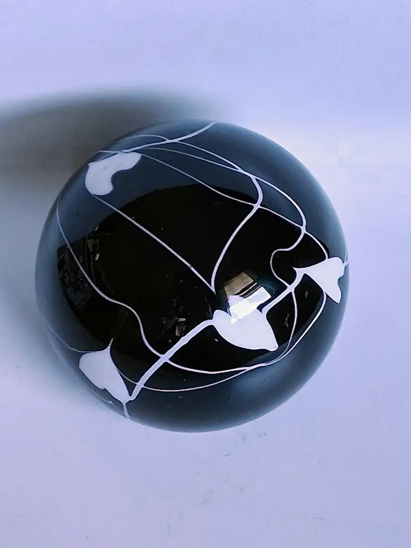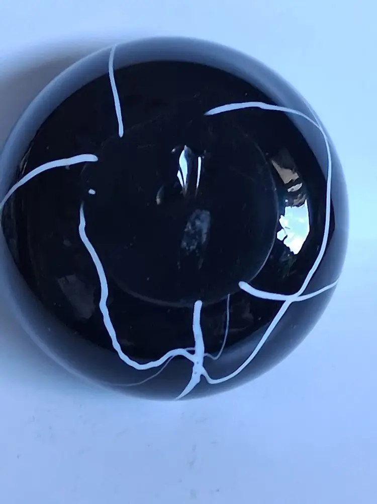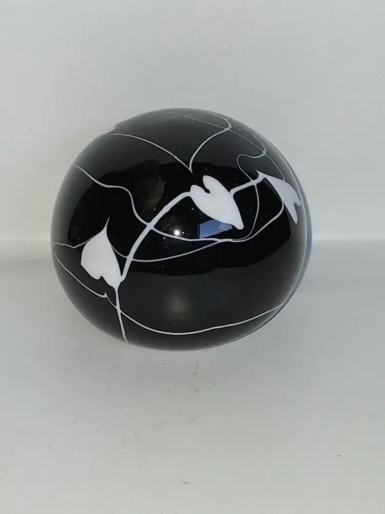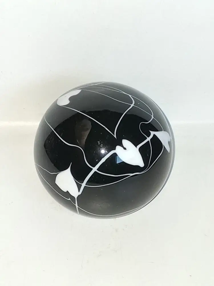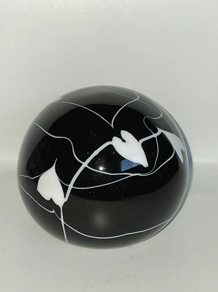 Approx. 3.0" high and 3.0" dia. Great cond! Note: the small 'gouge' on the bottom, happens often when the weight is separated from the hot glass blowing pipes.