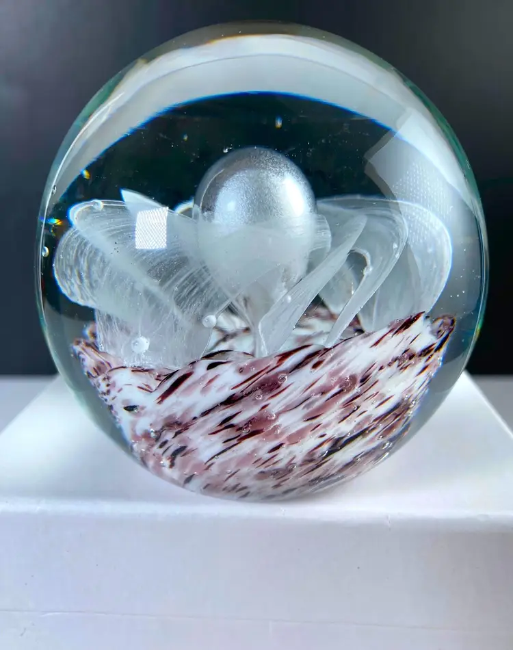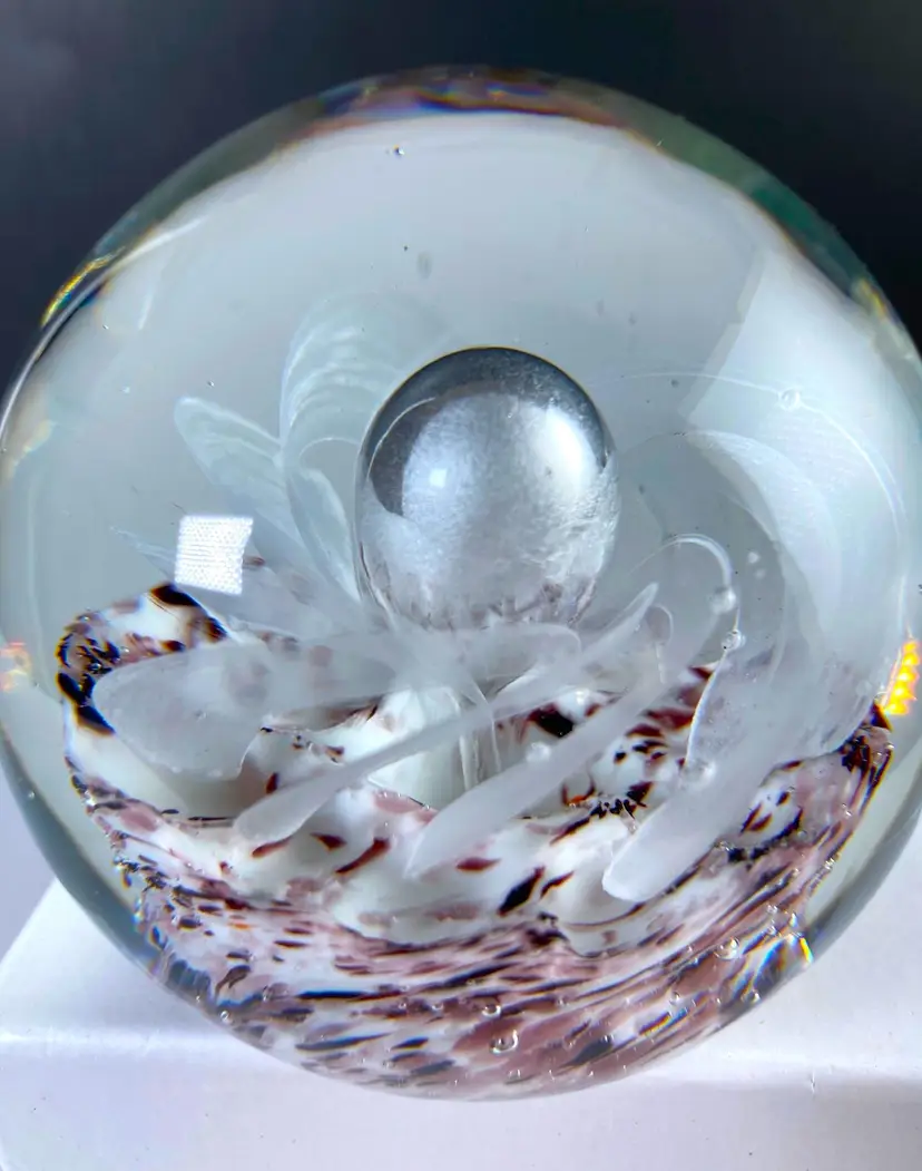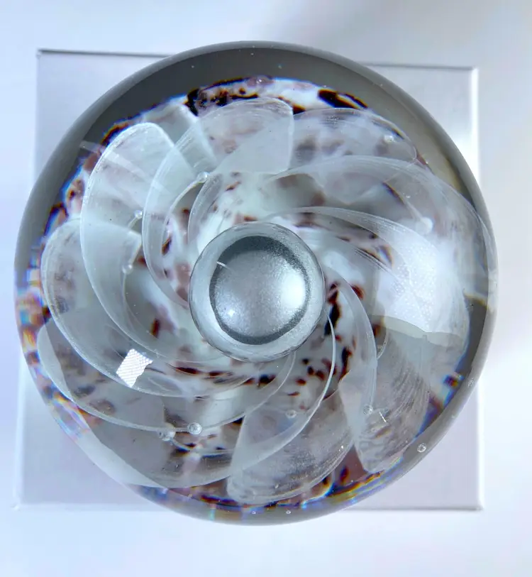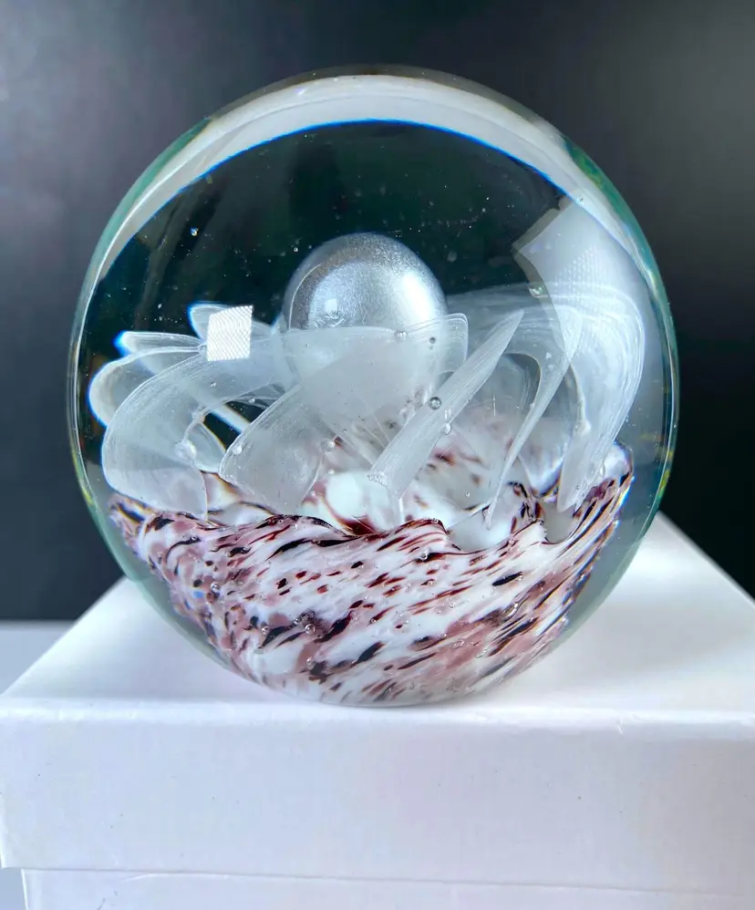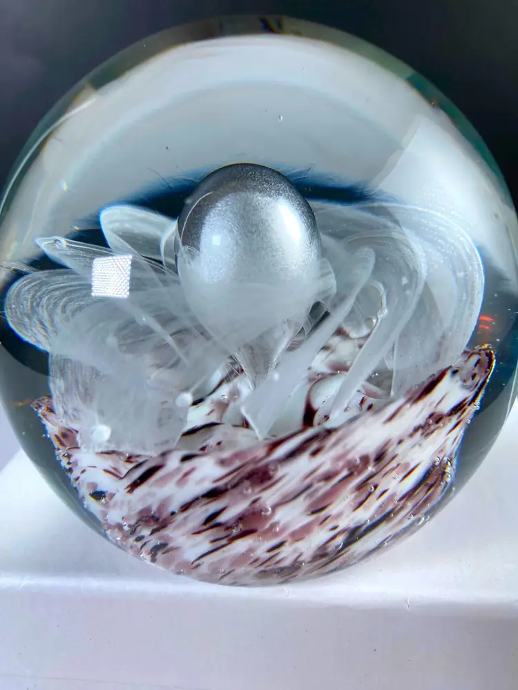 Vintage Gorgeous Lilac/White Hand Blown Art Glass Paperweight. This piece is in excellent pre-owned condition. No Flaws.
