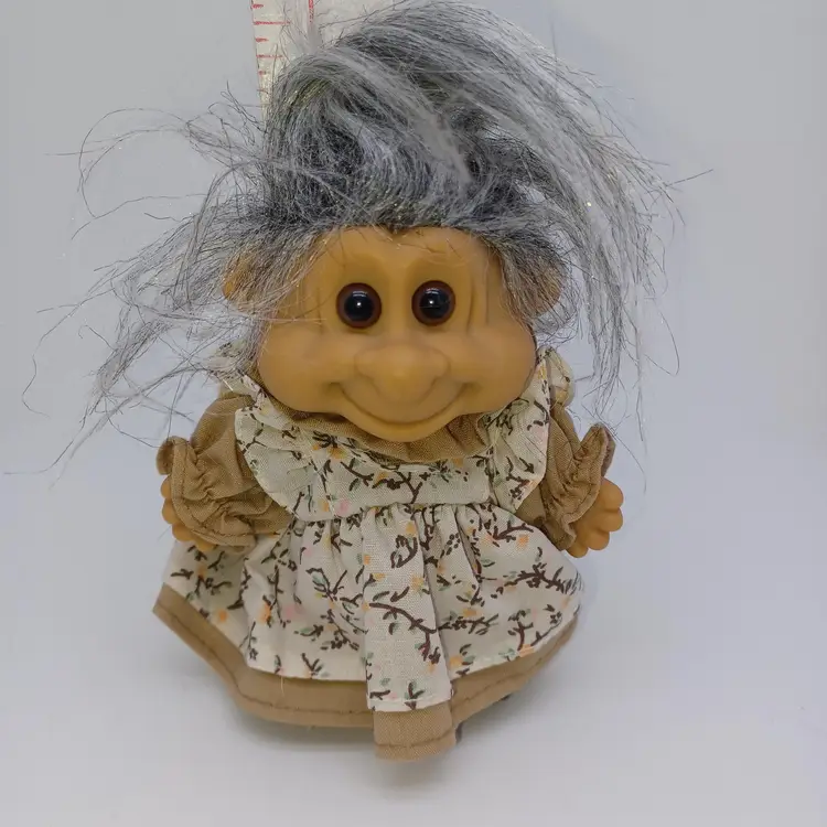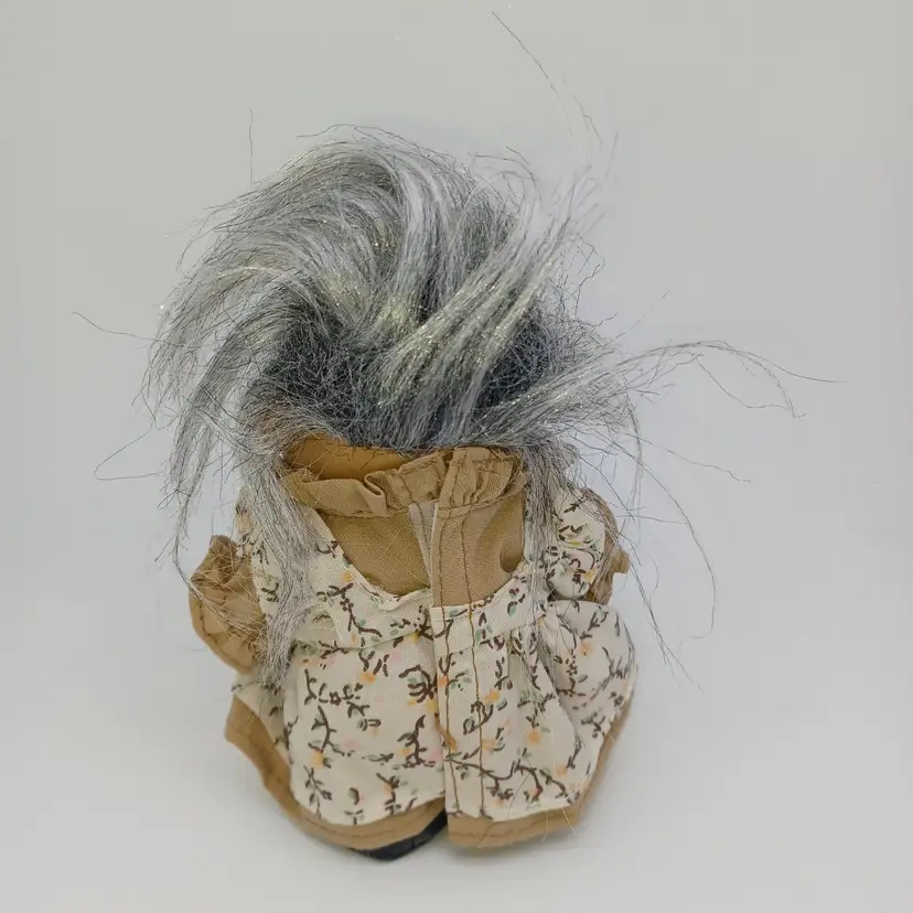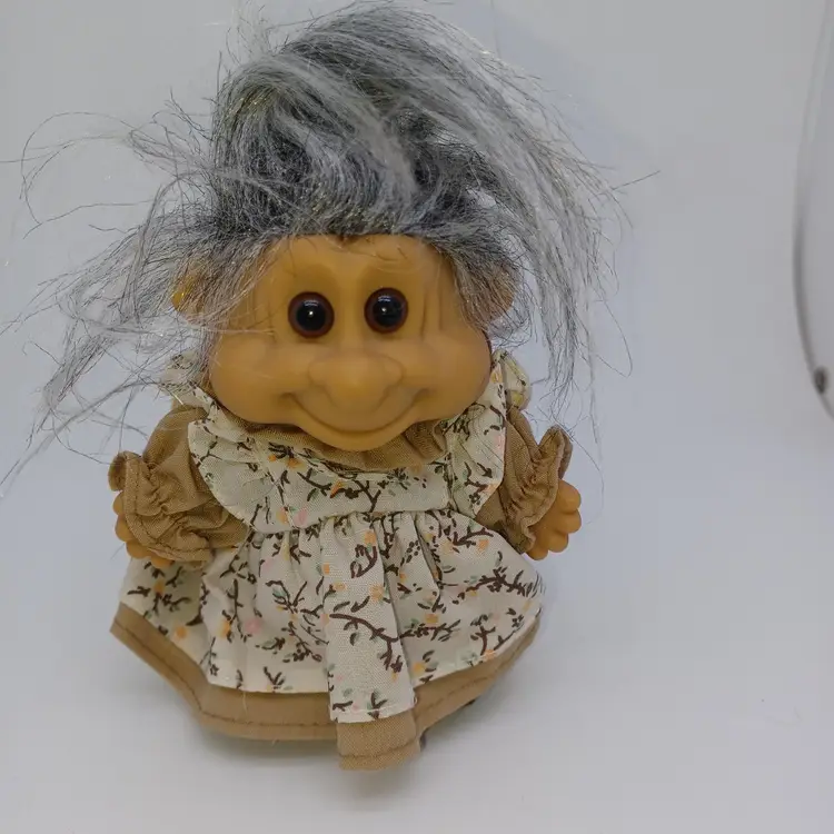 Vintage Troll Doll, Grandma, by Russ Berrie and Company. She stands about 5 inches tall not adding her massive gray hair to the measurement. She's clean, no odors Please see all pictures as they are the best description all items from a smoke-free home with pets experienced shipper. This item will be mailed in a padded mailer to help you save on shipping