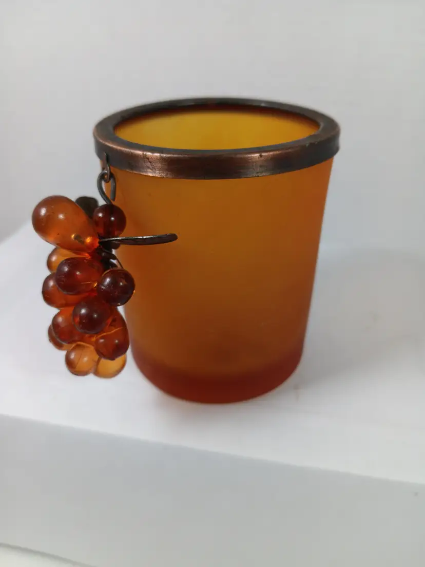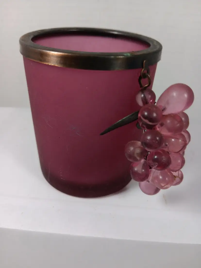 Set of 3 colorful candle holders adorned with grape cluster charms. Perfect for adding a touch of vintage charm to your home decor.