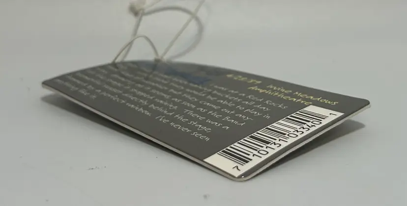 Great condition, no rips, stains or tears on body. Hang tag does not lay flat but has no crease marks.