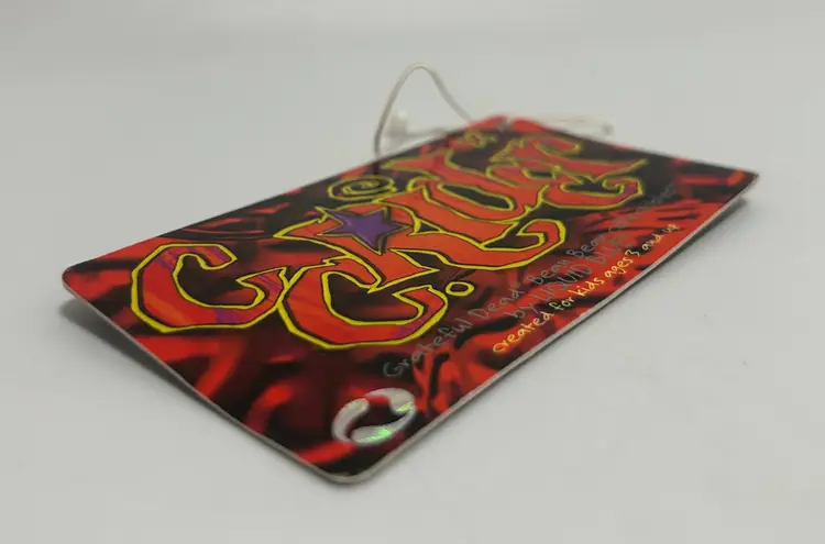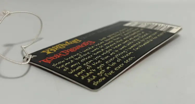 Great condition, no rips, stains or tears on body. Hang tag does not lay flat but has no crease marks.