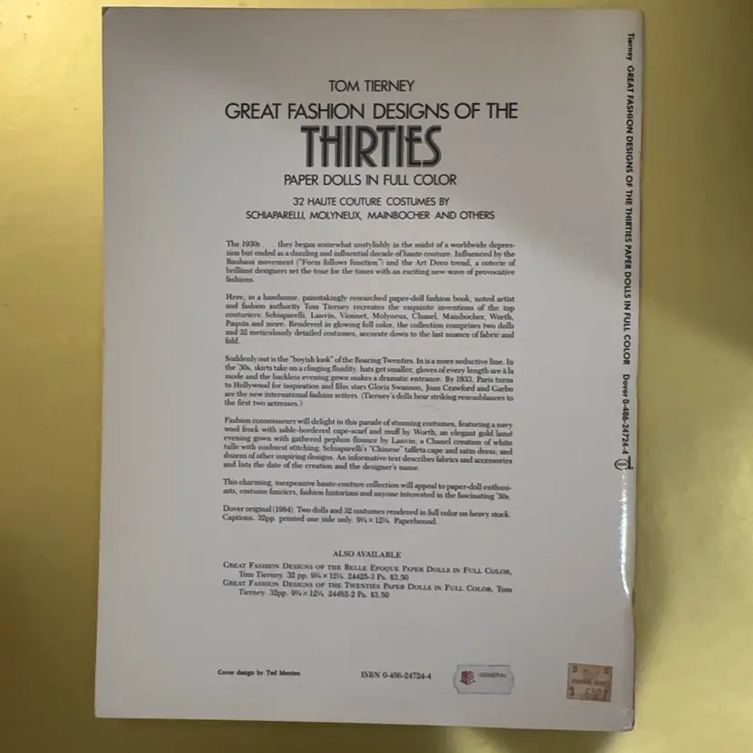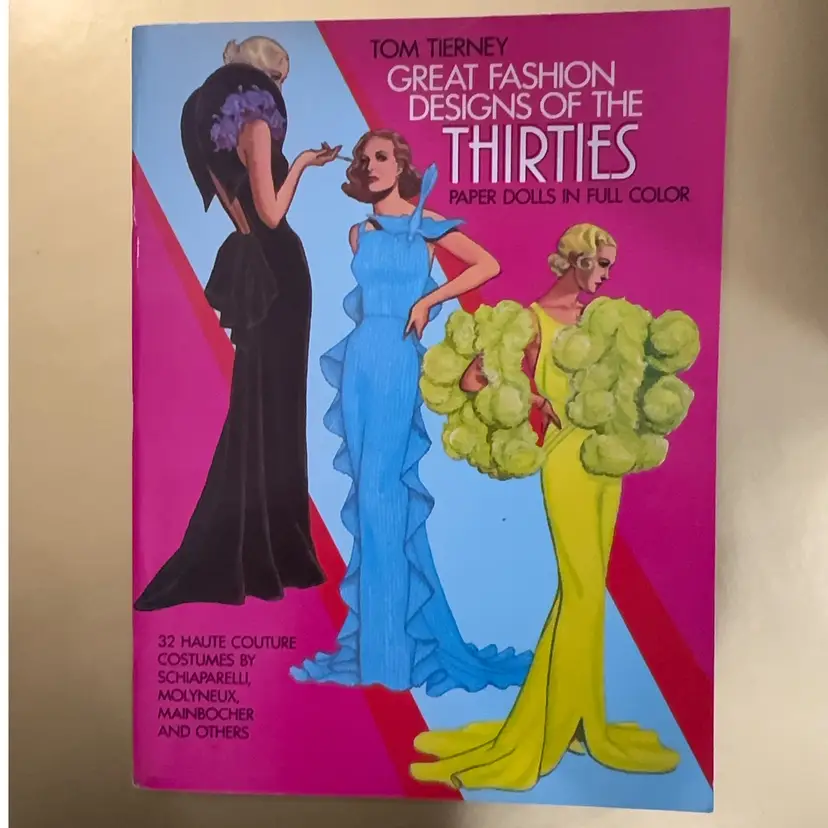 Paper dolls book featuring couture costumes from the 1930s. Information on designer for each piece included. In awesome vintage condition. A small amount of wear on binding.