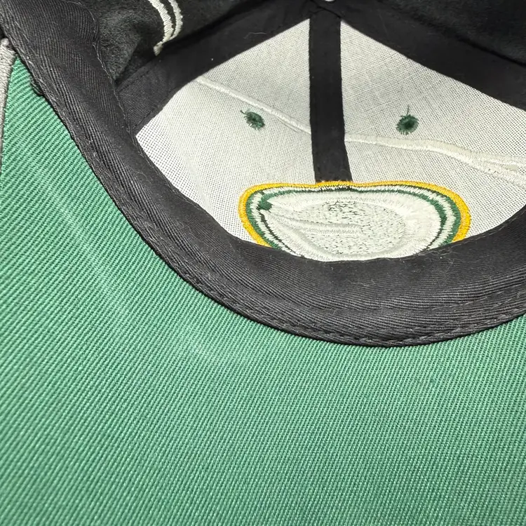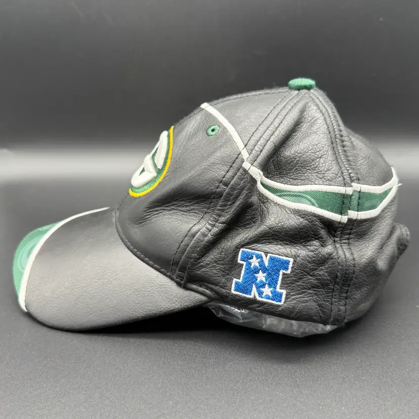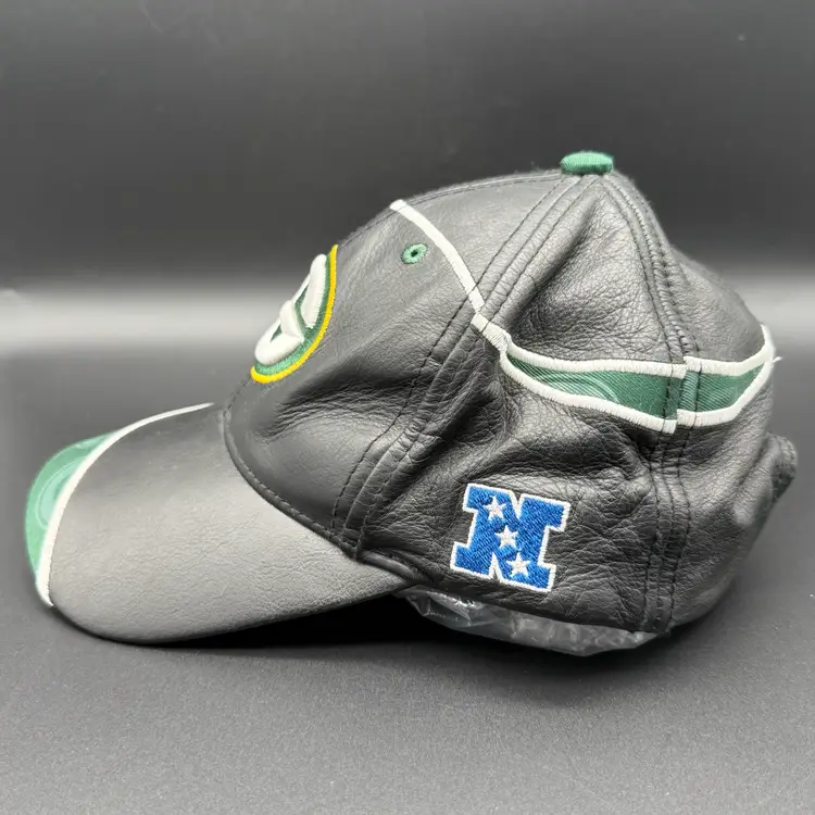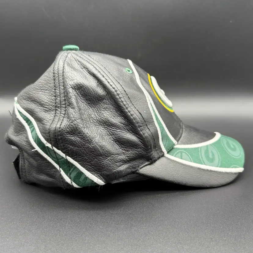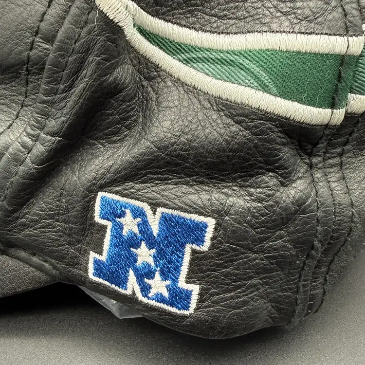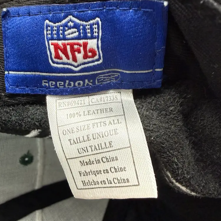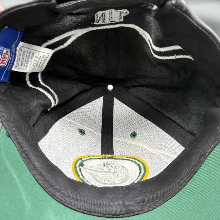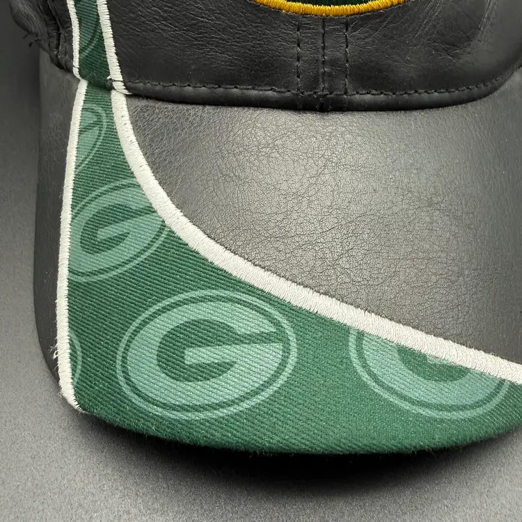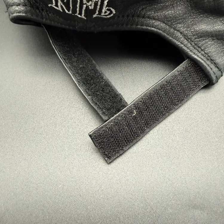 Great Condition. There is a small spot of wear on the underside of the bill, see photos. Clean; No odors, stains, rips or tears. Made in China. One Size Fits All. 100% Leather. Hook & Loop Closure.