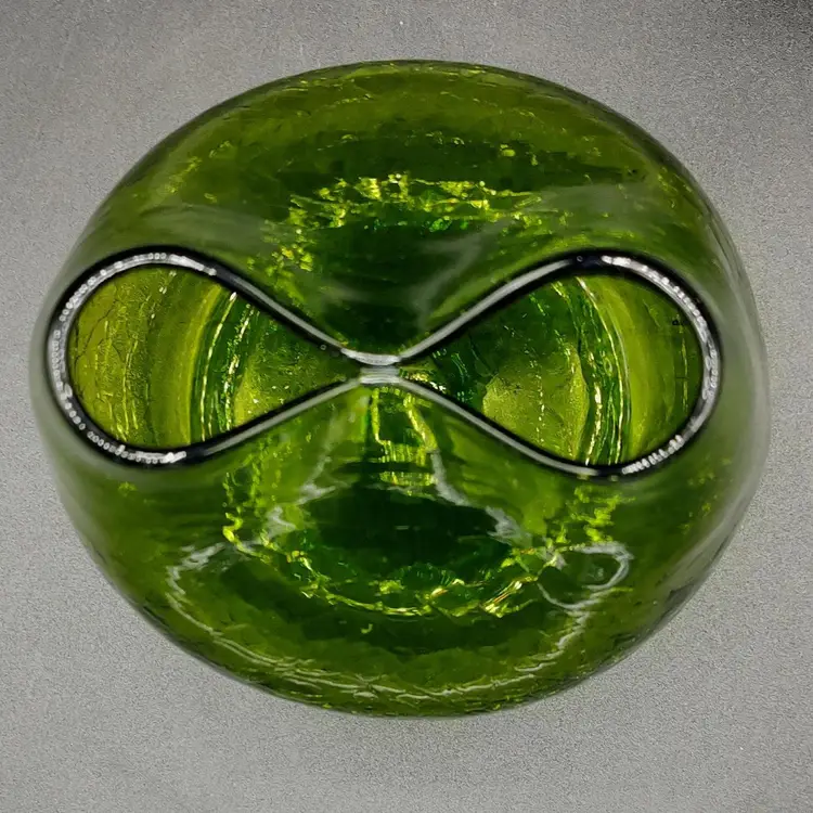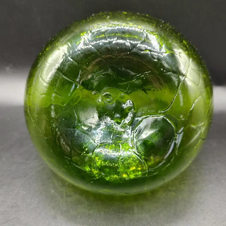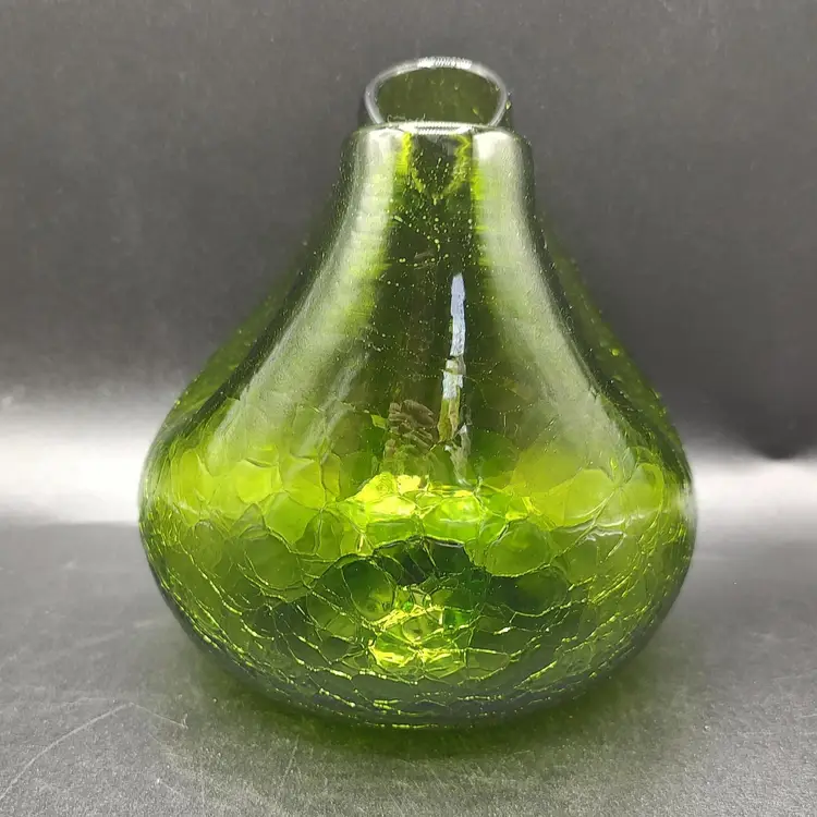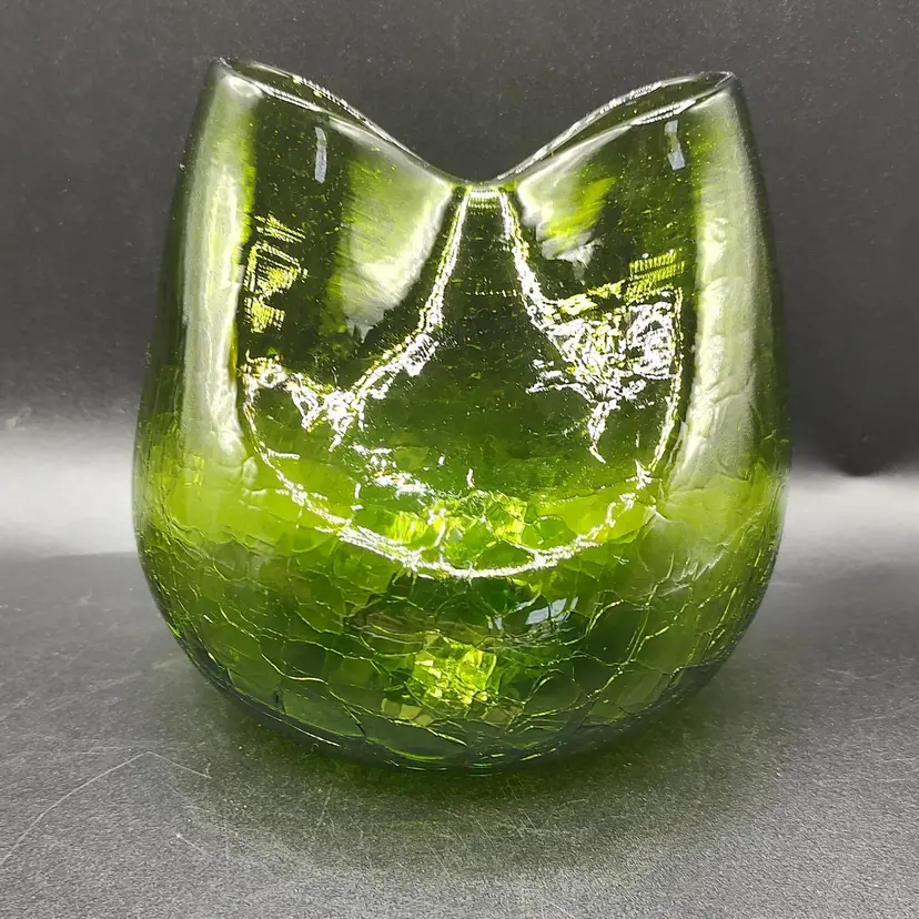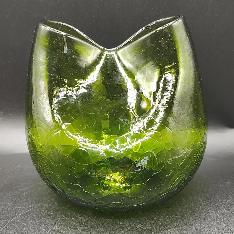 Charming vintage green crackle glass vase with a unique wavy rim. Perfect for adding a pop of color to any room. Height 5.5" x width 6".