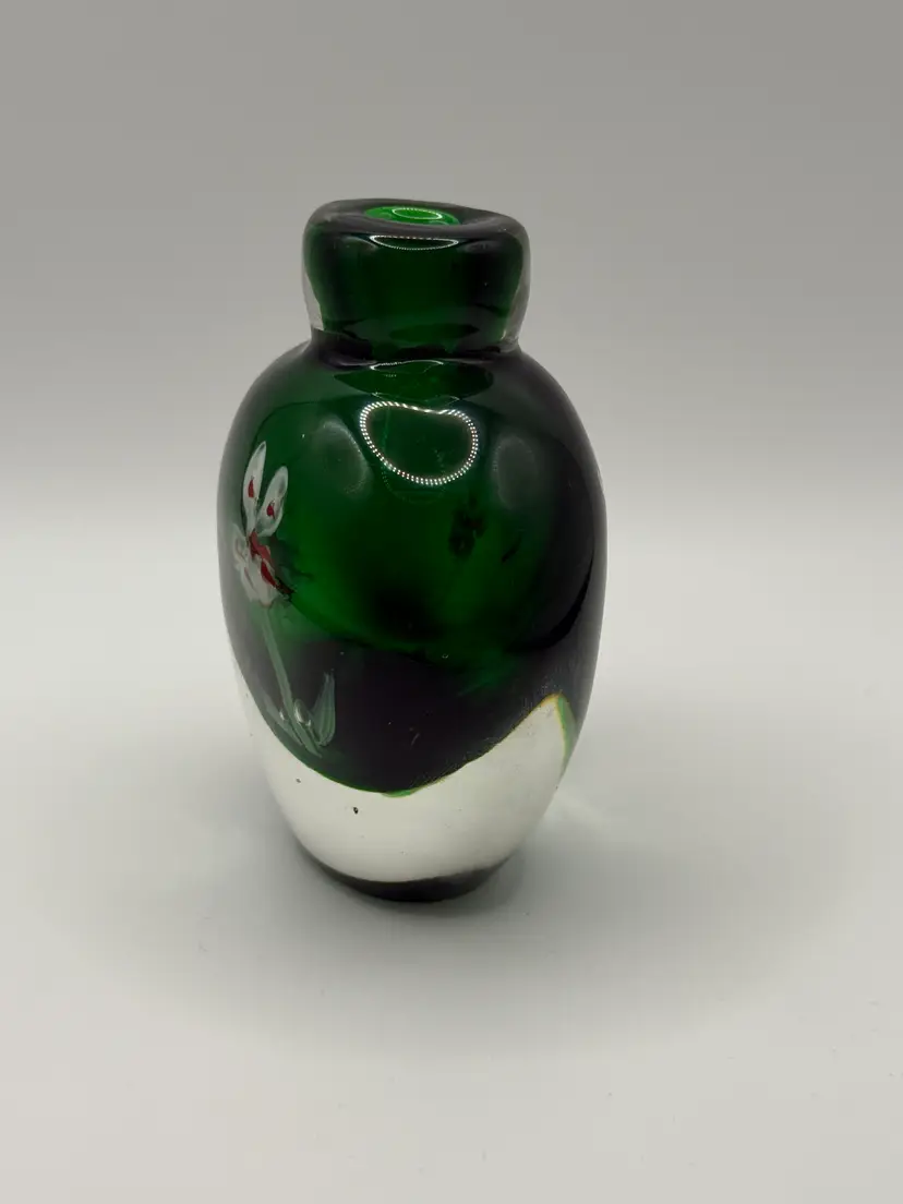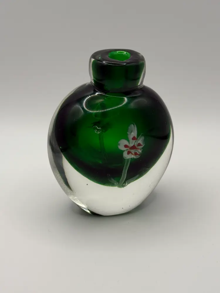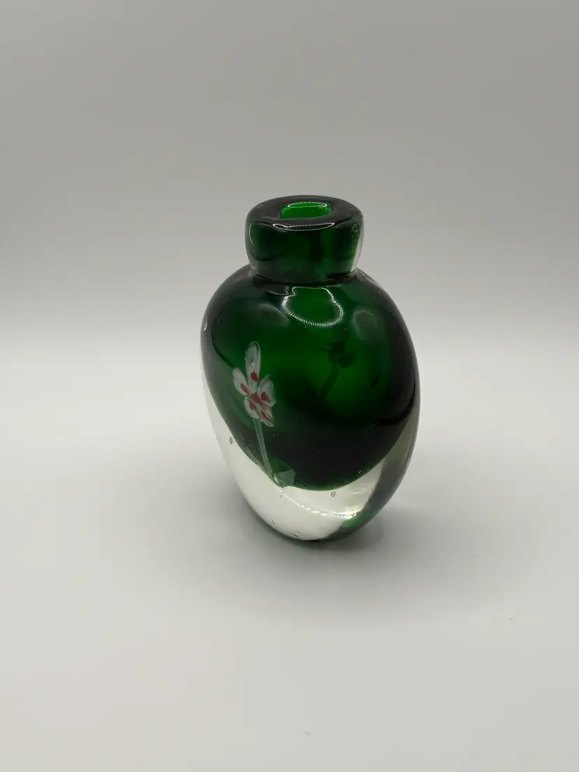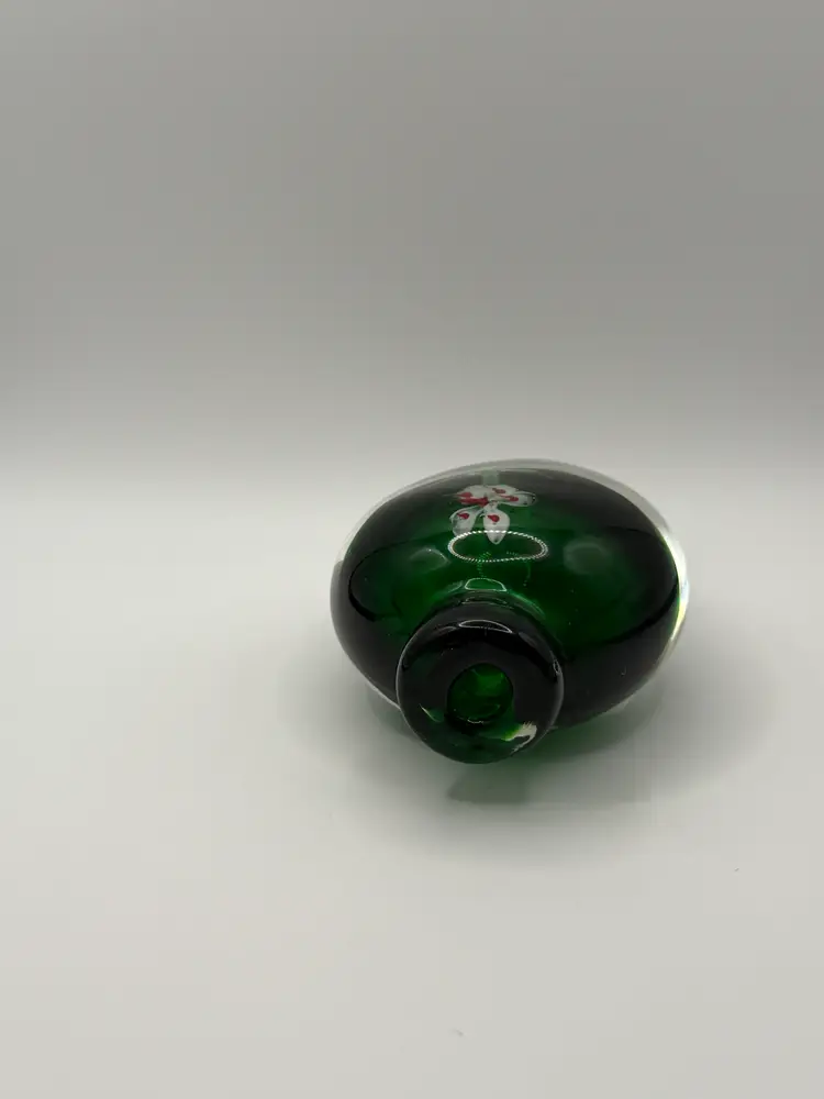 Vintage Green Floral Art Glass Perfume Bottle UV Glow **READ**